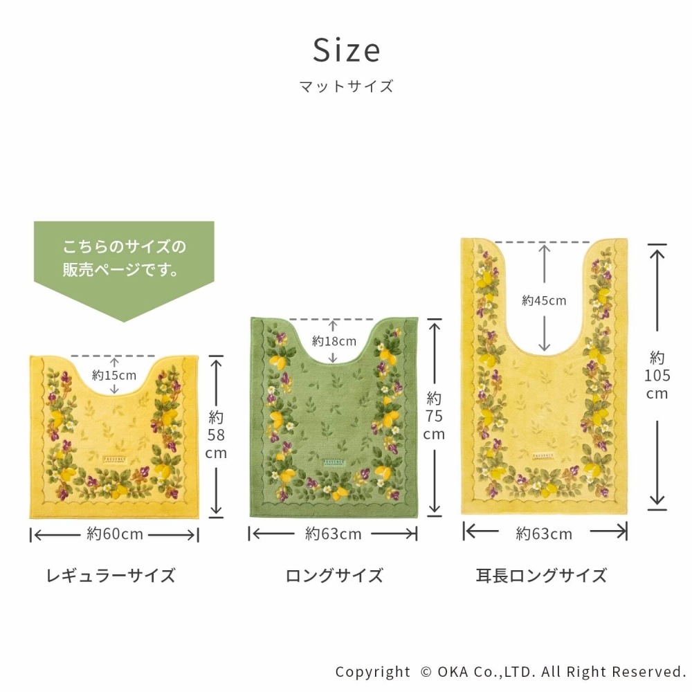 プロヴァンス シエル 耳長トイレマット 約105cm×63cm ( 耳長ロングサイズ 洗える 風水 黄 緑 )