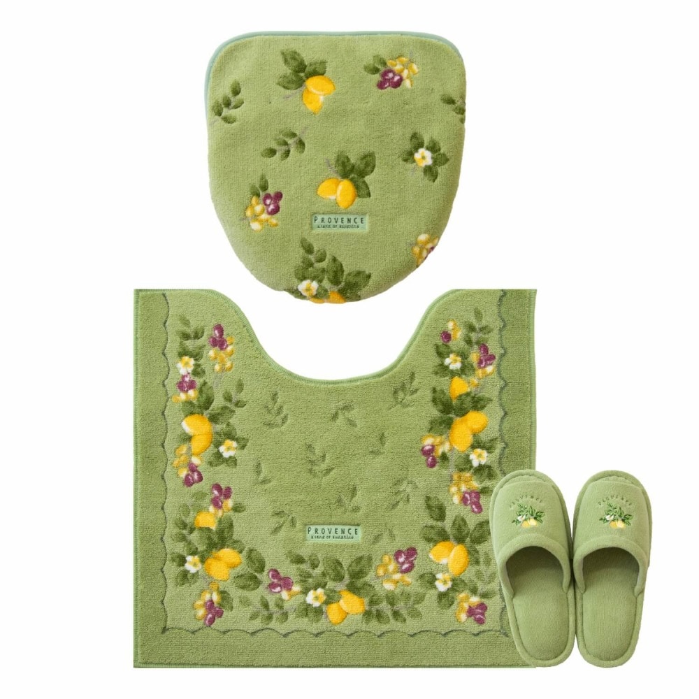 プロヴァンス シエル トイレ3点セット ( トイレマット+トイレフタカバードレニモタイプ+スリッパ ) ( 風水 黄 緑 トイレマットセット )