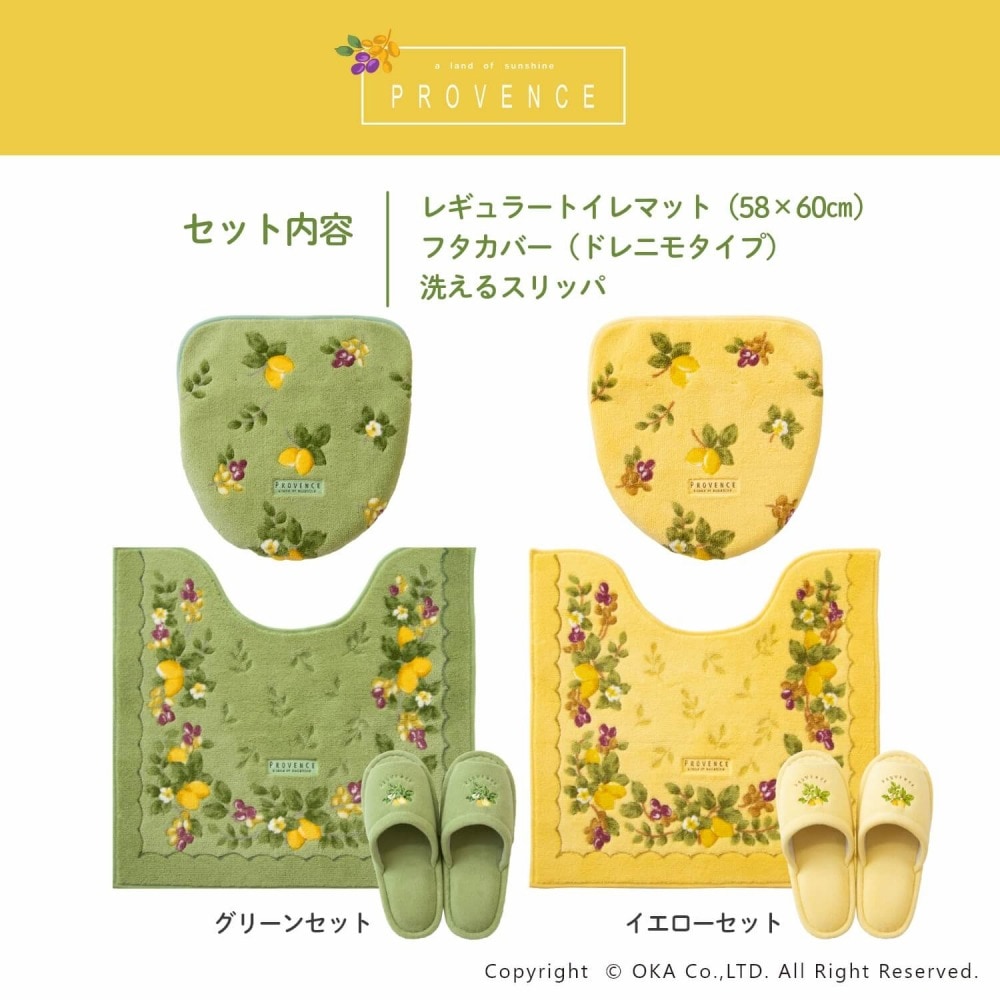 プロヴァンス シエル トイレマット 約58cm×60cm ( レギュラーサイズ 洗える 風水 黄 緑 )