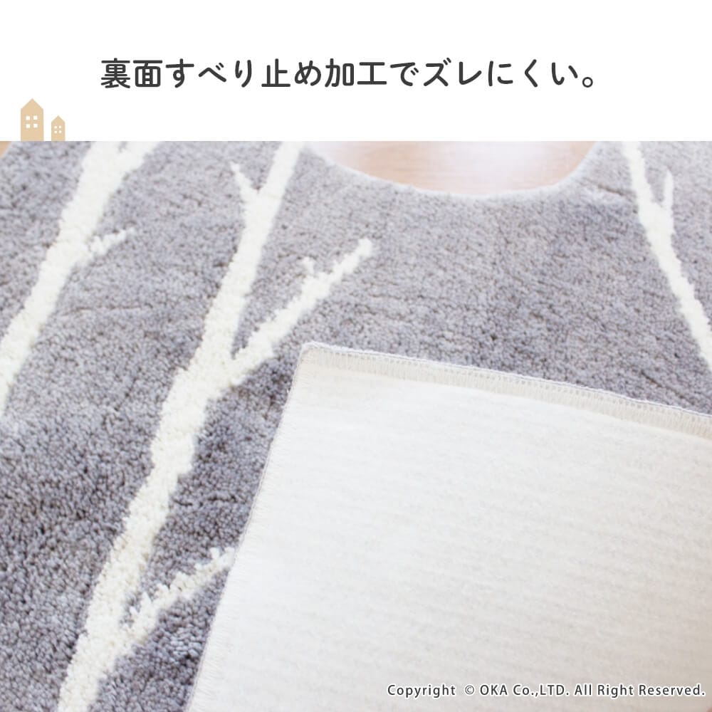 白樺の木が大人っぽく、シンプルでナチュラルな北欧デザインのトイレシリーズ「マトカ」。ベージュに寄せた優しげなピンクとモダンなグレーが大人カラーで落ち着きある色合いに。モダンで落ち着いた雰囲気のトイレ空間にしてくれます。ふわふわな素材で手触りが優しく、踏み心地のよいトイレマット。裏面はすべり止め加工が施されており、ズレにくくなっています。