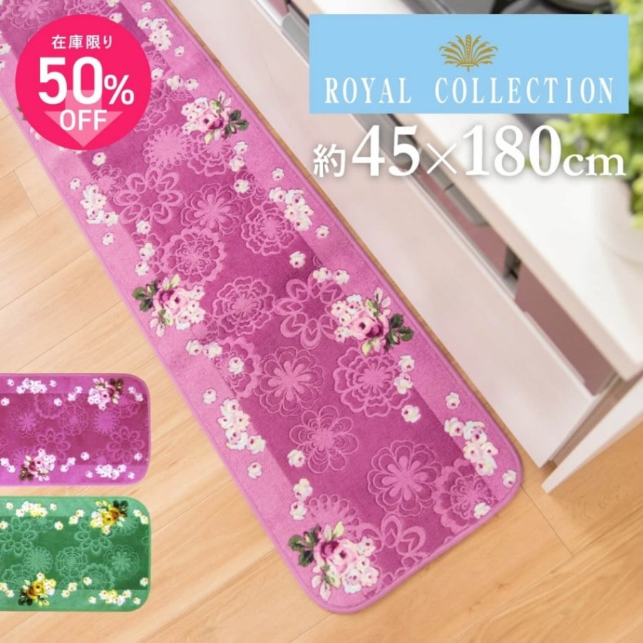 ロイヤルコレクション ドイリー キッチンマット 約45cm×180cm ( 日本製 すべり止め ピンク 洗える )