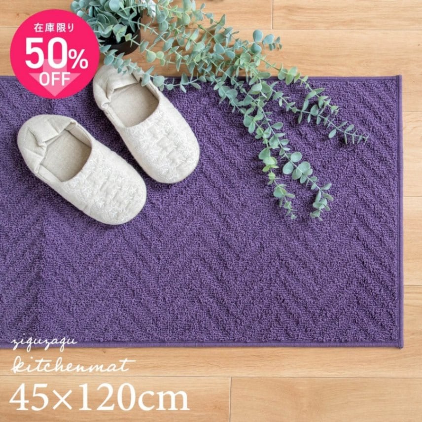 プリス ジグザグ キッチンマット 約45cm×120cm ( 洗える すべり止め パープル 紫 台所マット )