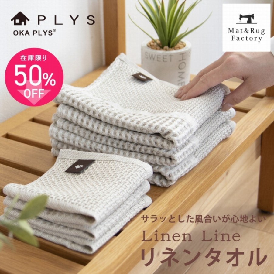 プリス ワッフル織りのリネンタオル 約40cm×75cm ( 麻 洗える )