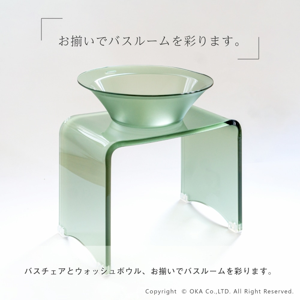 丈夫で美しく透明度の高い素材で作ったバスチェア&ウォッシュボウル(洗面器)「Dナチュレ」シリーズをセットでお得なセール価格に。当店オリジナルの「乾度良好Dナチュレ」バスマットシリーズとおそろいでコーディネートができるバス用品です。ガラスのような艶と煌めき、清潔感のある浴用成形品です。座面側はつやつや、裏面側はマット加工、曇りガラスのような素材感で高級感がありバスルームを格調高く彩ります。浴室内で意外と大きく場所を取るバスチェア。半透明なので光を通し圧迫感を和らげてくれます。継ぎ目がないシンプルなデザインで水滴が残る場所を限りなく減らしました。コの字型なので内側に湿気がこもりにくく、効率よく乾きます。床との設置部分には樹脂素材のキャップがついているので、傷防止&すべり止め効果があります。