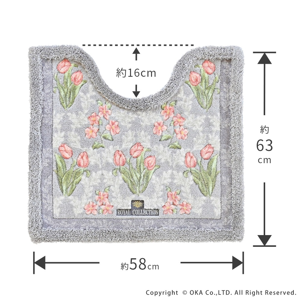 ロイヤルコレクション アーツ トイレマット 約58cm×63cm ( 花柄 エレガント 日本製 洗える 滑り止め レギュラーサイズ )