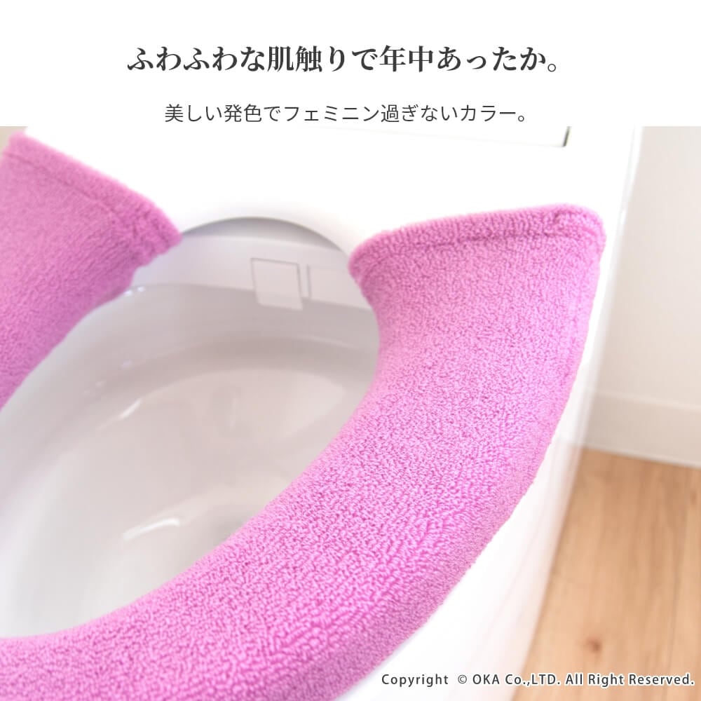 上品な雰囲気で高級感のあるトイレシリーズ「ロイヤルコレクション アーツ」でお揃いにでき、伸びの良い生地でふんわりやわらかい肌触りの洗浄暖房型専用便座カバー。カバーの裏側には、すべり止めとフックが付いているのでズレにくい。フェミニン過ぎない美しい発色のピンク、グリーン、グレーの3色。着脱の簡単な当社オリジナルのソフトホックのプラスチックボタンで装着がぐんとラクになりました。洗濯ネットに入れて、丸洗い可能なのでご自宅の洗濯機でお手入れができるので衛生的です。