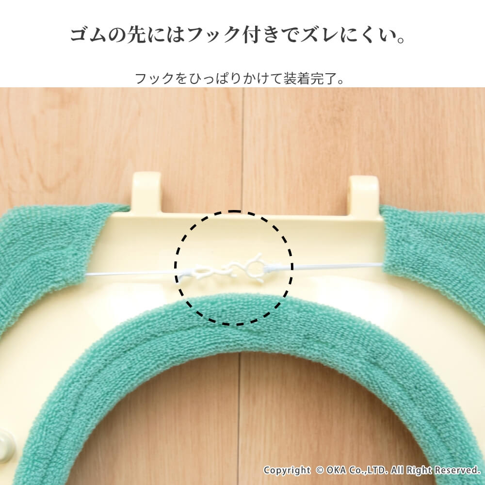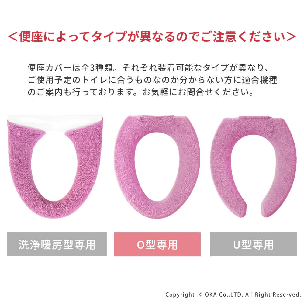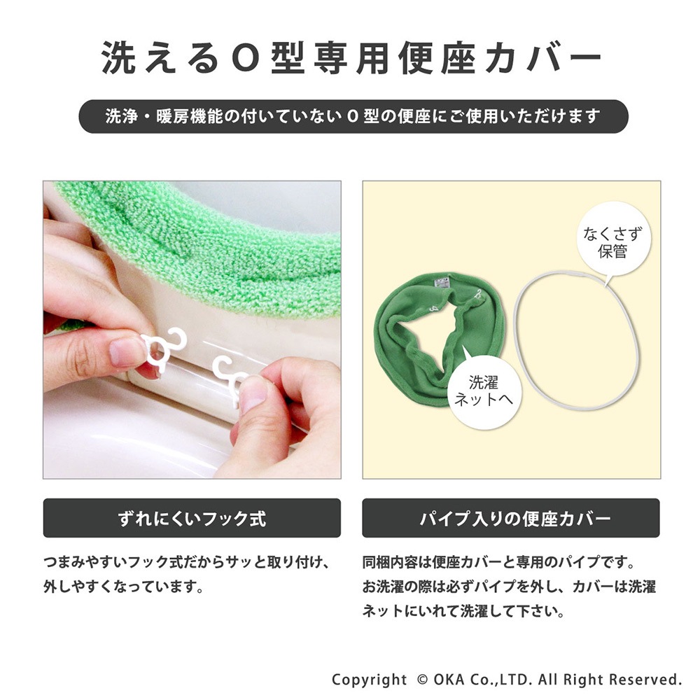 上品な雰囲気で高級感のあるトイレシリーズ「ロイヤルコレクション アーツ」でお揃いにでき、伸びの良い生地でふんわりやわらかい肌触りのO型専用便座カバー。フックが付いているのでズレにくく、洗濯ネットに入れて丸洗い可能なので、ご自宅の洗濯機でお手入れができるので衛生的です。フェミニン過ぎない美しい発色のピンク、グリーン、グレーの3色。※便座部分は、たて44cm、よこ37cm以内のものにご使用ください。