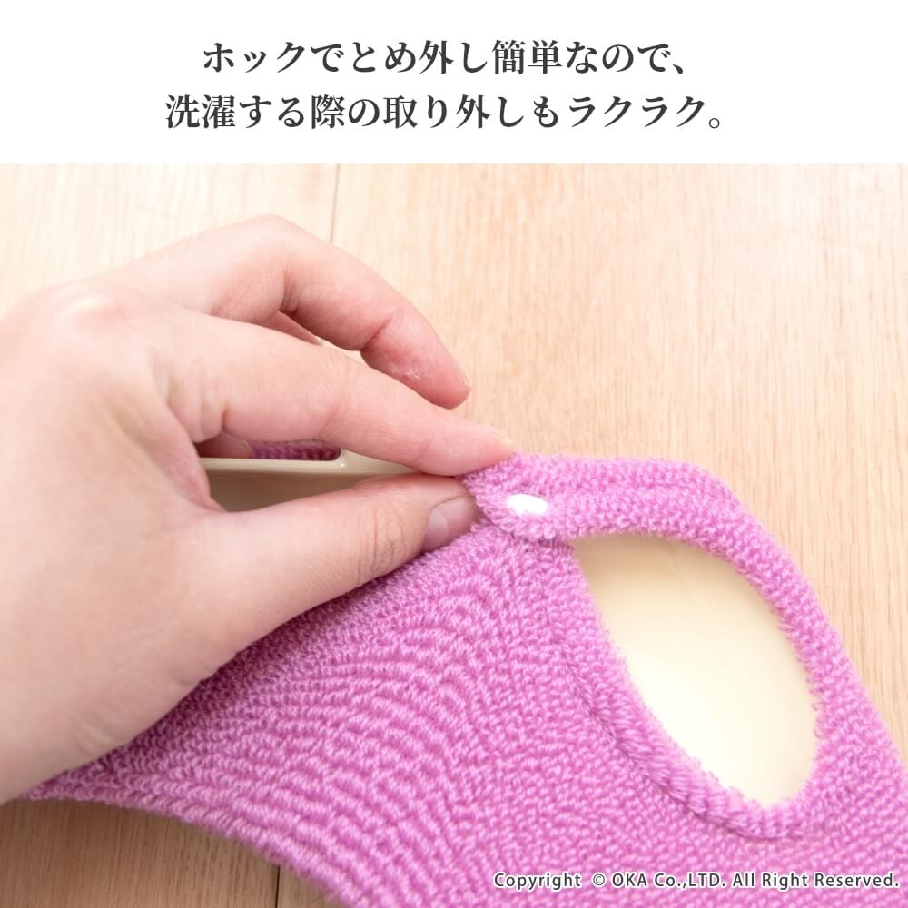 - ●乾燥機はご使用にならないでください。(熱により変形・損傷の恐れがあります。)●漂白剤はご使用にならないでください。●洗濯機での丸洗いは洗濯ネットをご使用ください。●パイル(糸)をひっぱったり、引っかけたりしないでください。(パイル(糸)がほどけた場合、ハサミでカットしてください。)●無理な力が加わると、ホックが破損、変形することがあります。●薬品を使ってお掃除する場合は、便座カバーを外してください。●伸縮する素材を使用していますので、サイズに違いが生じる場合がありますが、使用上問題ありません。