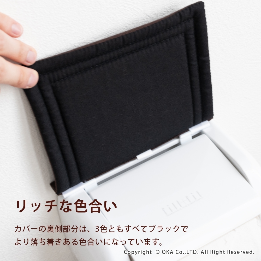 トイレの空間をクリーンに、手軽におしゃれにトイレを清潔感ある印象にしてくれるプリスベイスウィルのシリーズでお揃いにできるペーパーホルダーカバー。シンプルなデザインだから、どんなインテリアにも合いやすいです。カバー裏側は全色ともブラックでモダンに、シックな色合いに仕上がっています。リッチな雰囲気の色合いで、同シリーズでお揃いにするとよりおしゃれな空間になります。