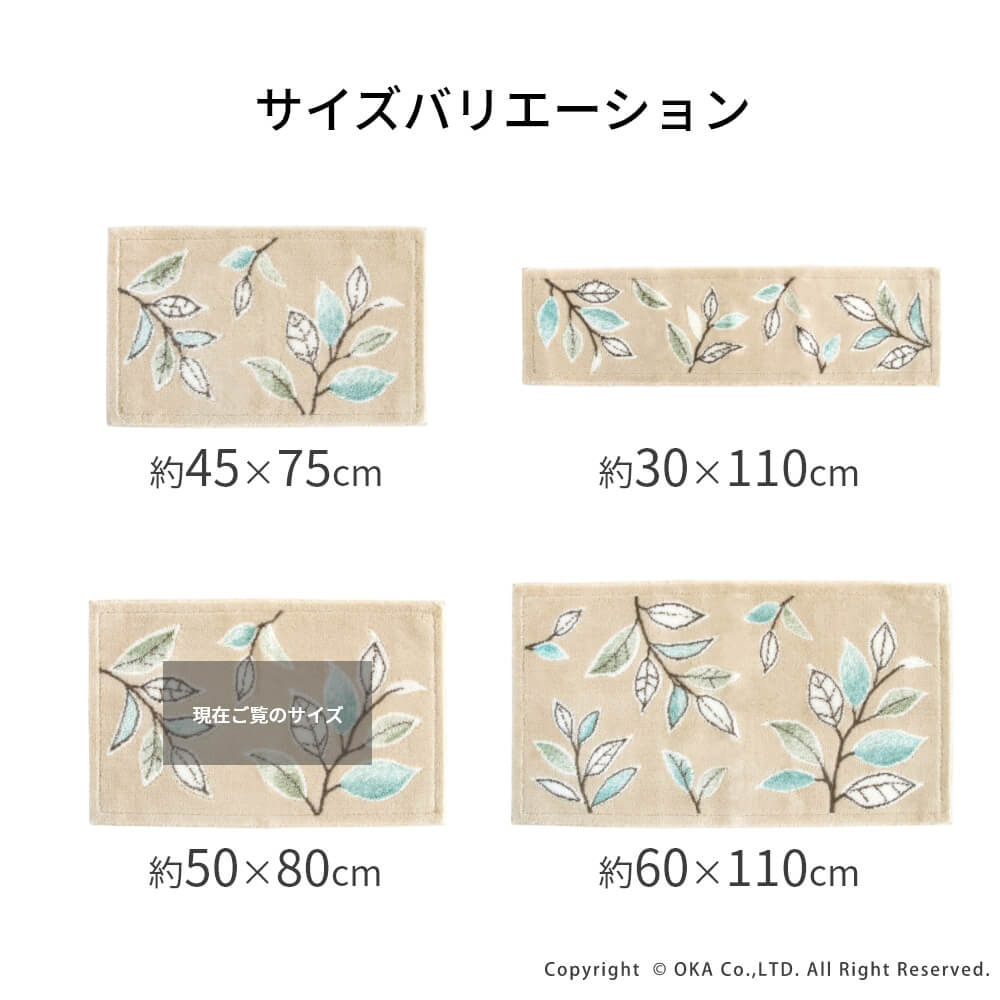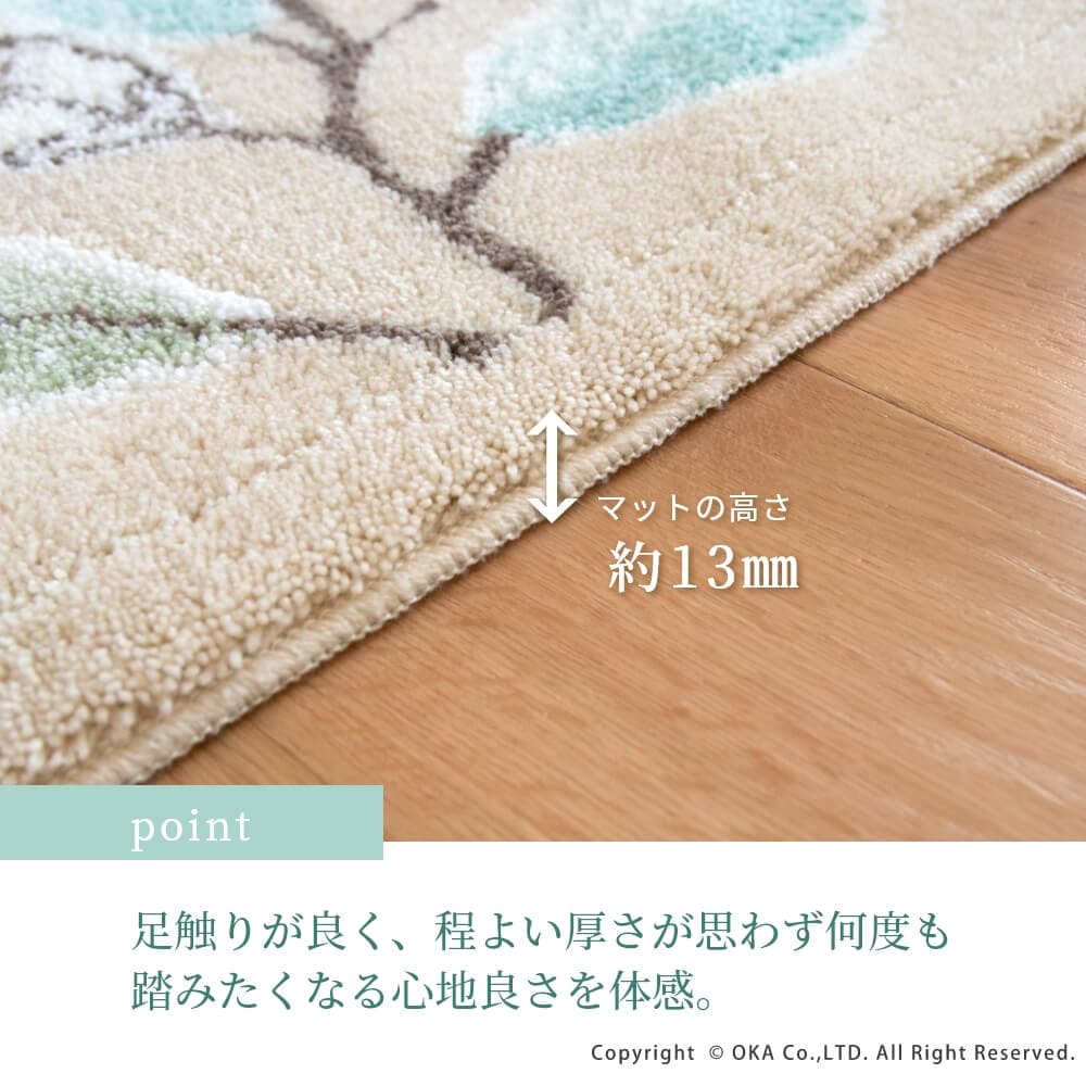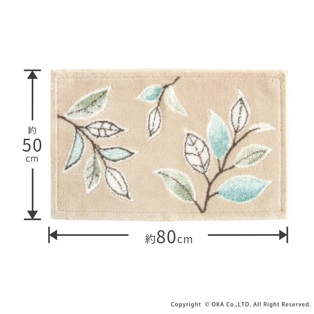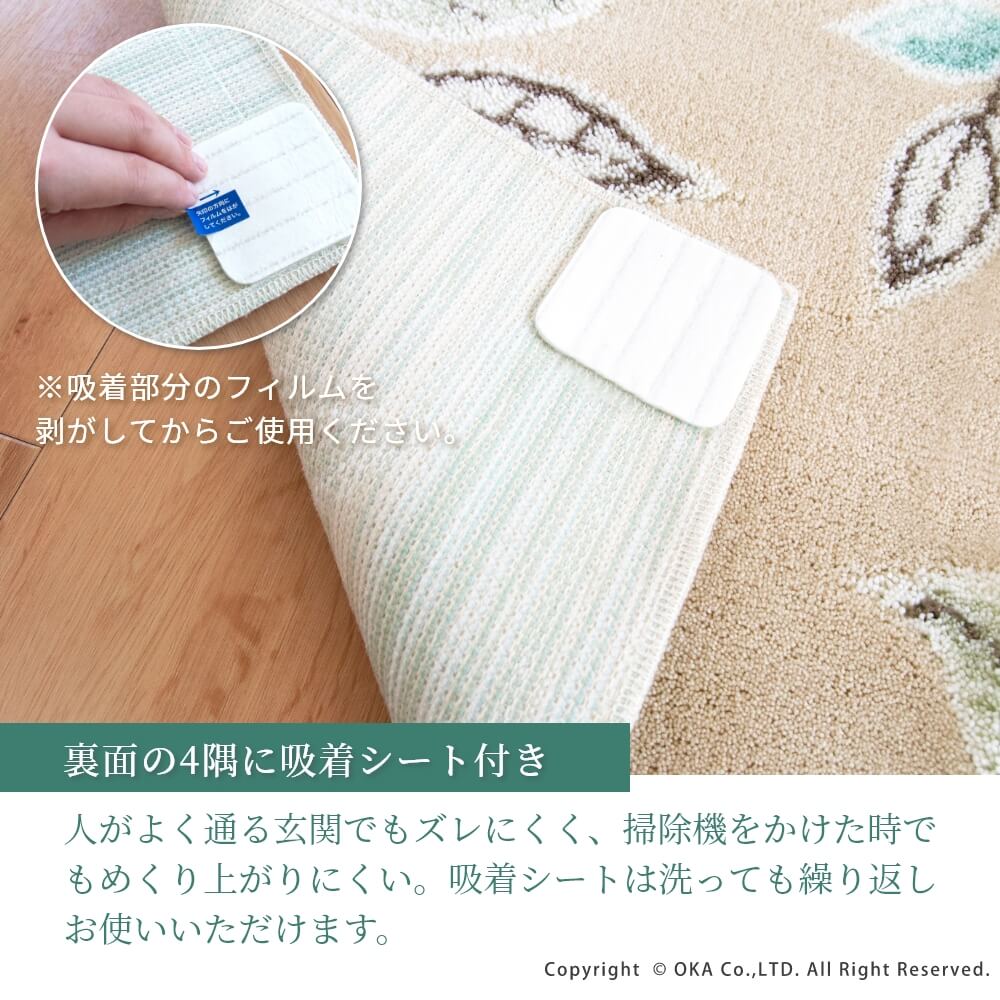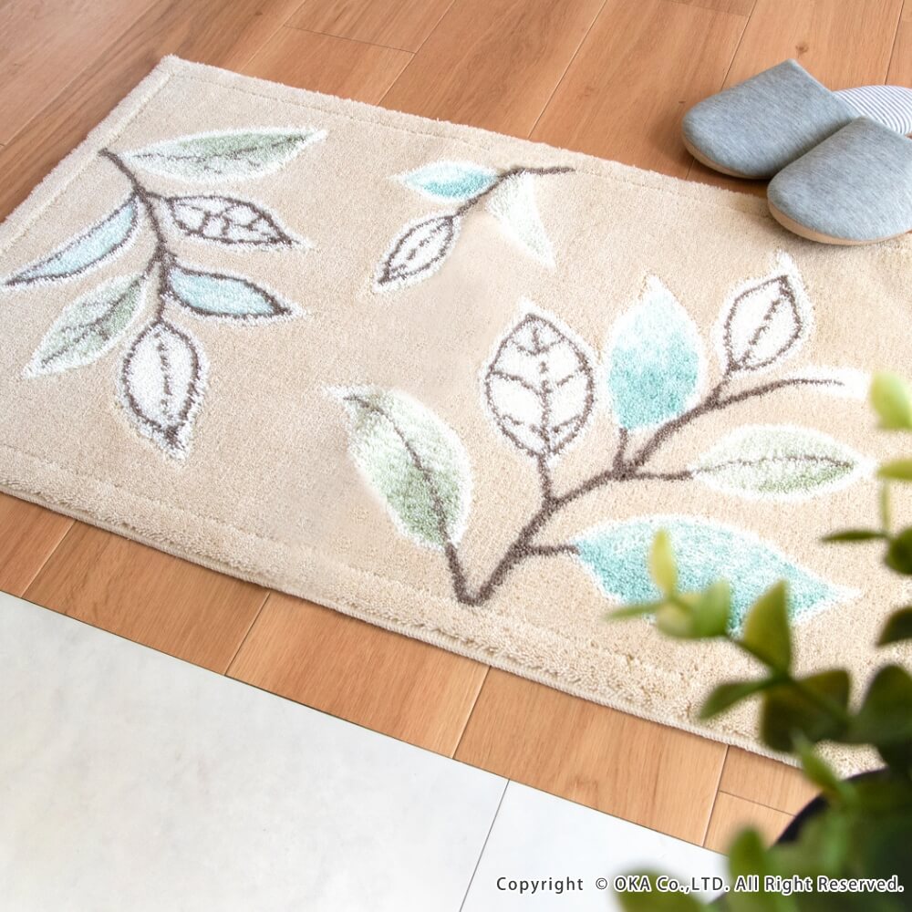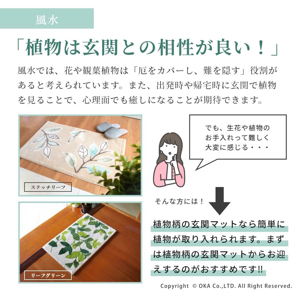 洗えるコーナー吸着玄関マットステッチリーフ 約50cm×80cm ( 日本製 洗える 風水 ナチュラル リーフ )