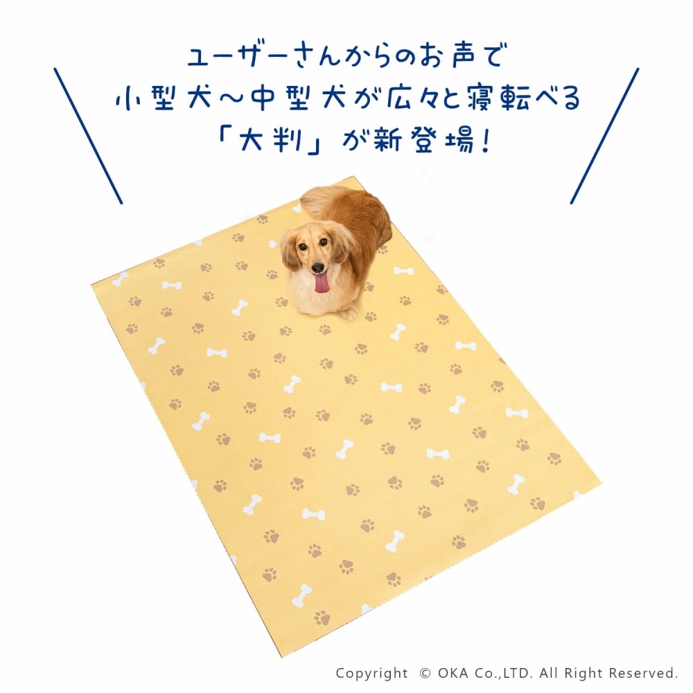 ペット用ケージやサークル内を汚れやキズから守るカットできるマット「ラクペトモ」ケージマット。 ペットと人が暮らす空間をもっと快適にしたいそんな想いから生まれたペットウェアです。 厚さ3mmのマットでクッション性があり汚れても簡単にお手入れができます。 敷きたいスペースに合わせてサイズを調整できます。 マットの裏面はすべり止め加工がされているのでずれにくくなっています。 インテリアに馴染むベージュカラーにポップな肉球柄の1カラー展開です。 汚れてしまってもサッと拭いてお手入れが可能です。