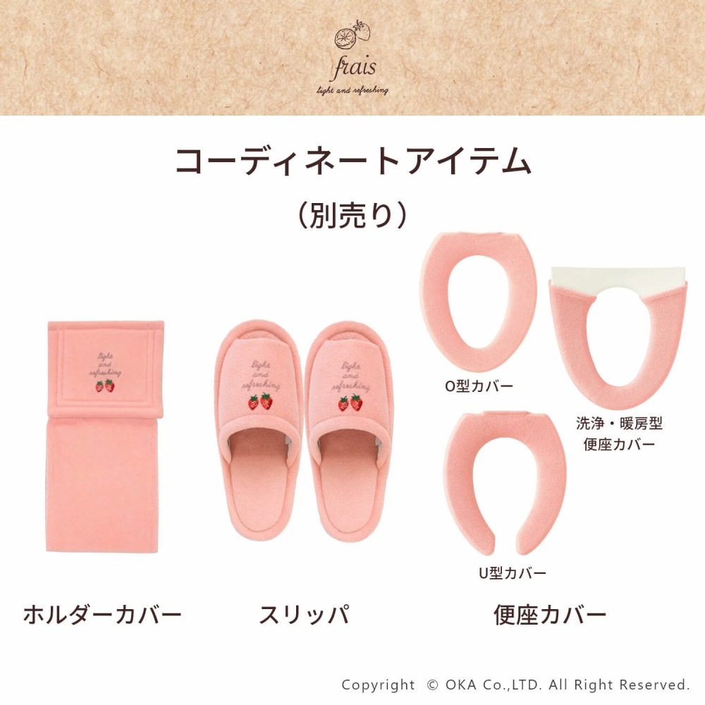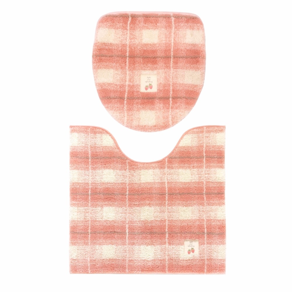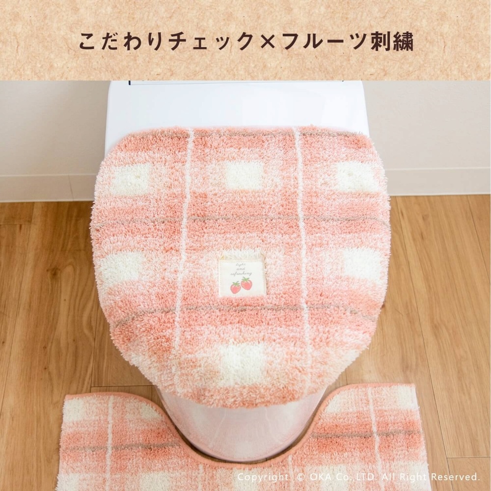 ほっこりと落ち着けるあたたかみのあるデザイン「フライス」トイレセット。標準サイズのトイレマット(約55×60cm)とフタカバー(ドレニモタイプ)のセットです。ギンガムチェックとフルーツのワンポイント刺繍がほっとするあたたかさを感じられるトイレタリーセットです。丸洗いOK(※洗濯ネットをご使用ください)。トイレマット裏面すべり止め加工。