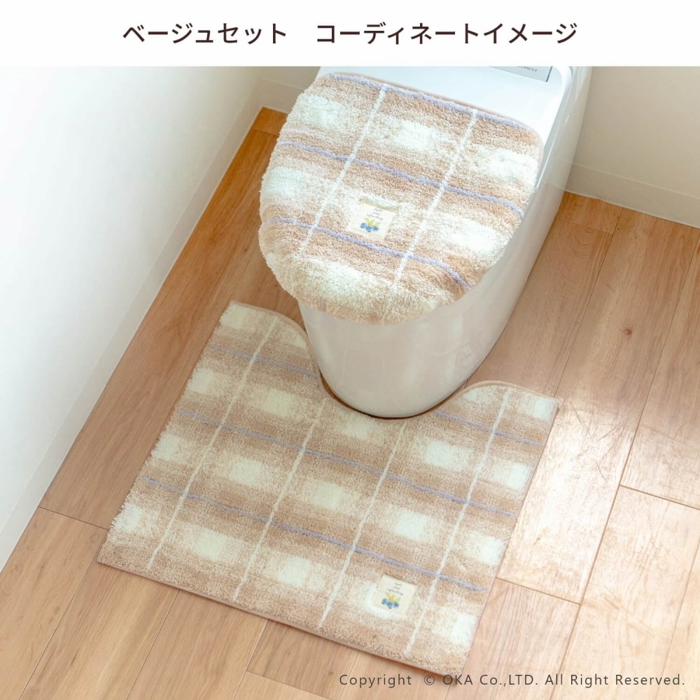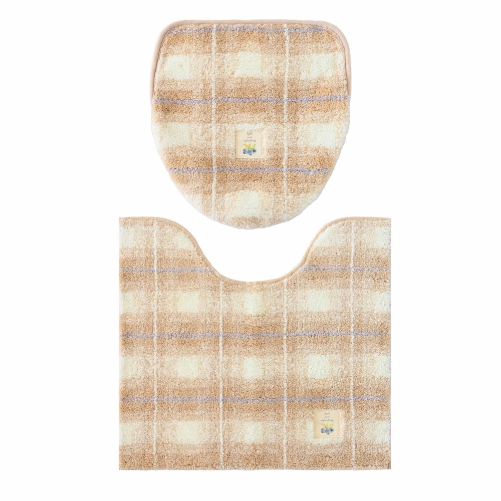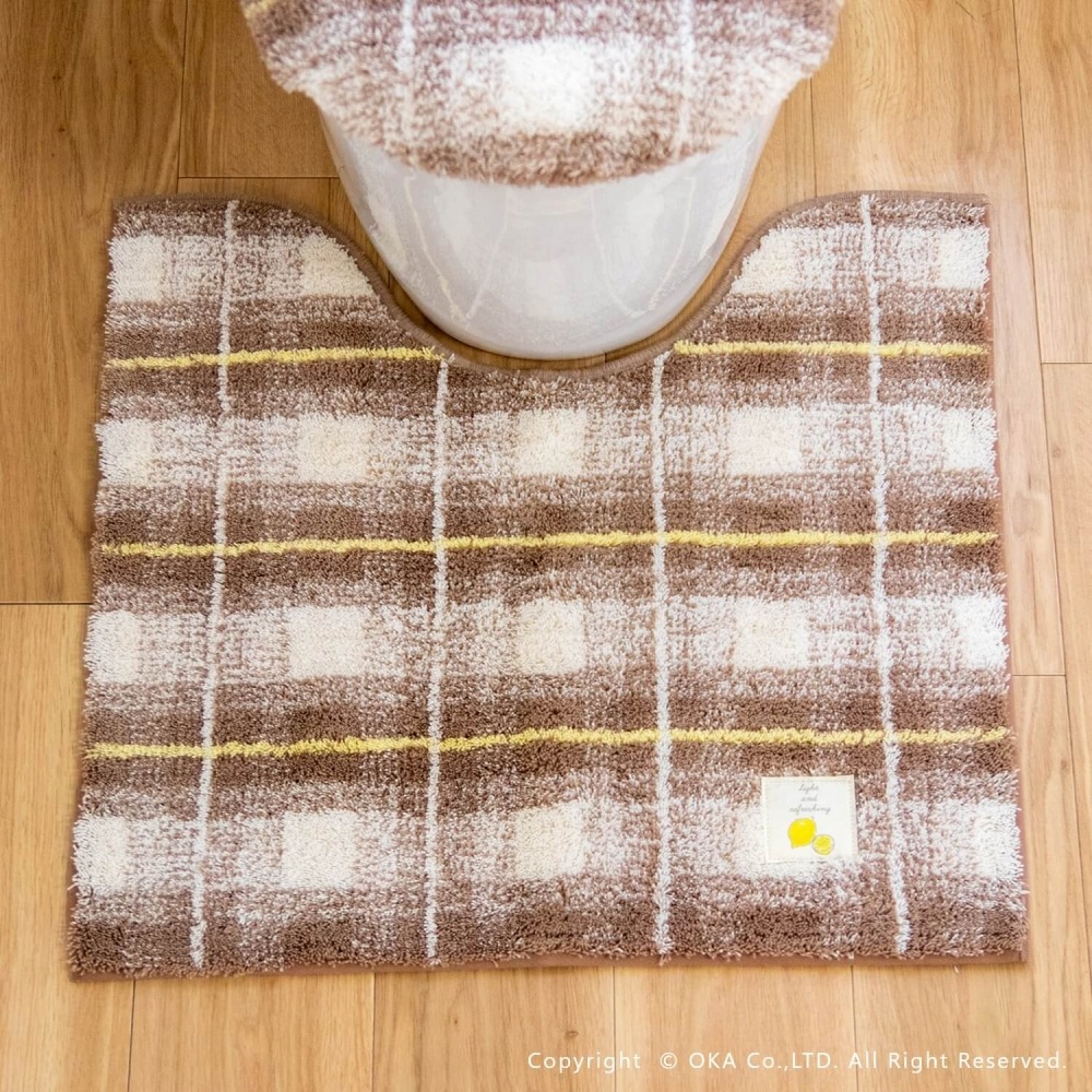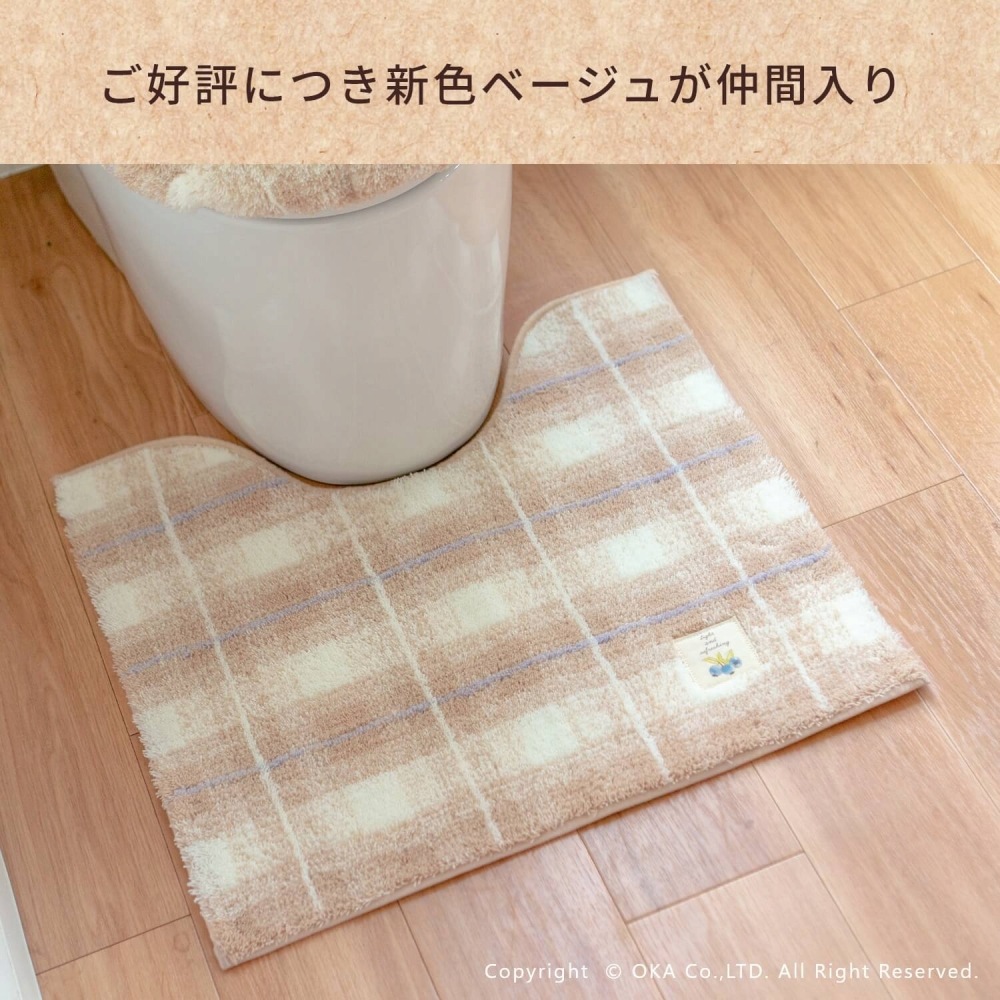フライス ロングトイレマット 約75cm×63cm ( 洗える 大判 チェック柄 ロングサイズ )