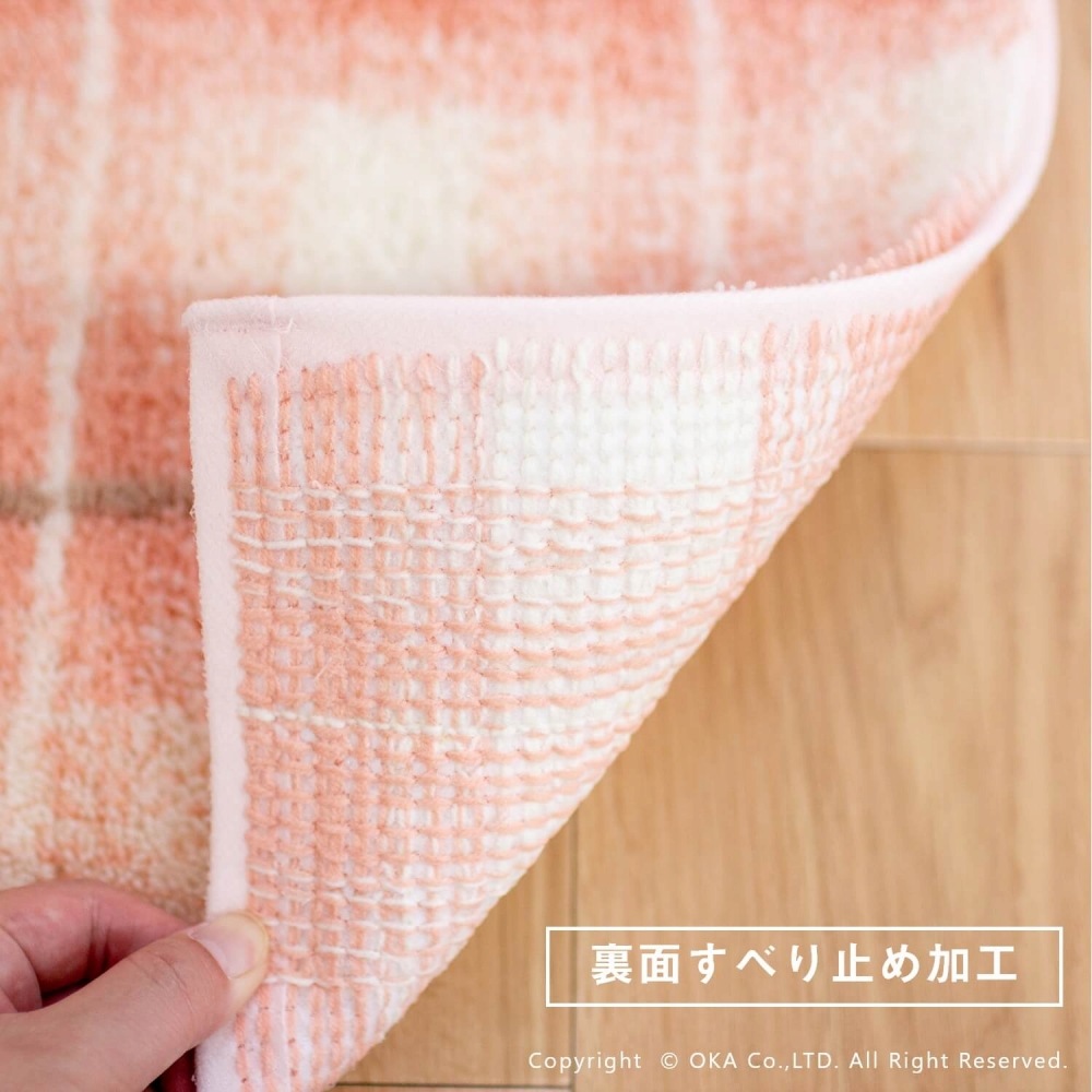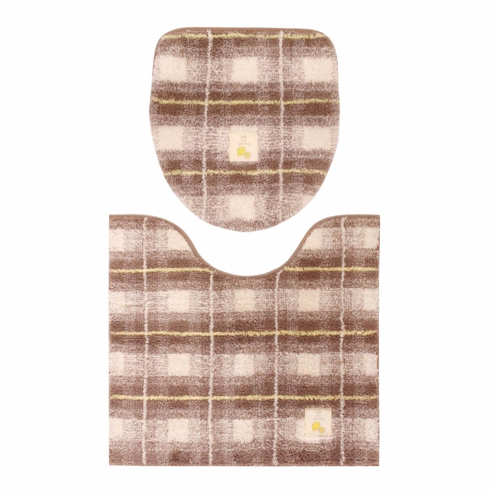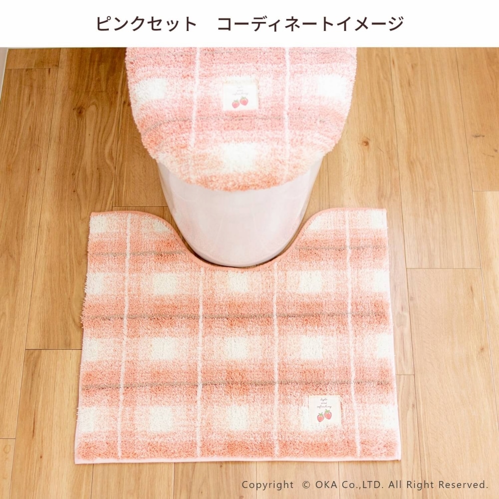 フライス トイレマット 約55cm×60cm ( 洗える ピンク ブラウン チェック柄 レギュラーサイズ )