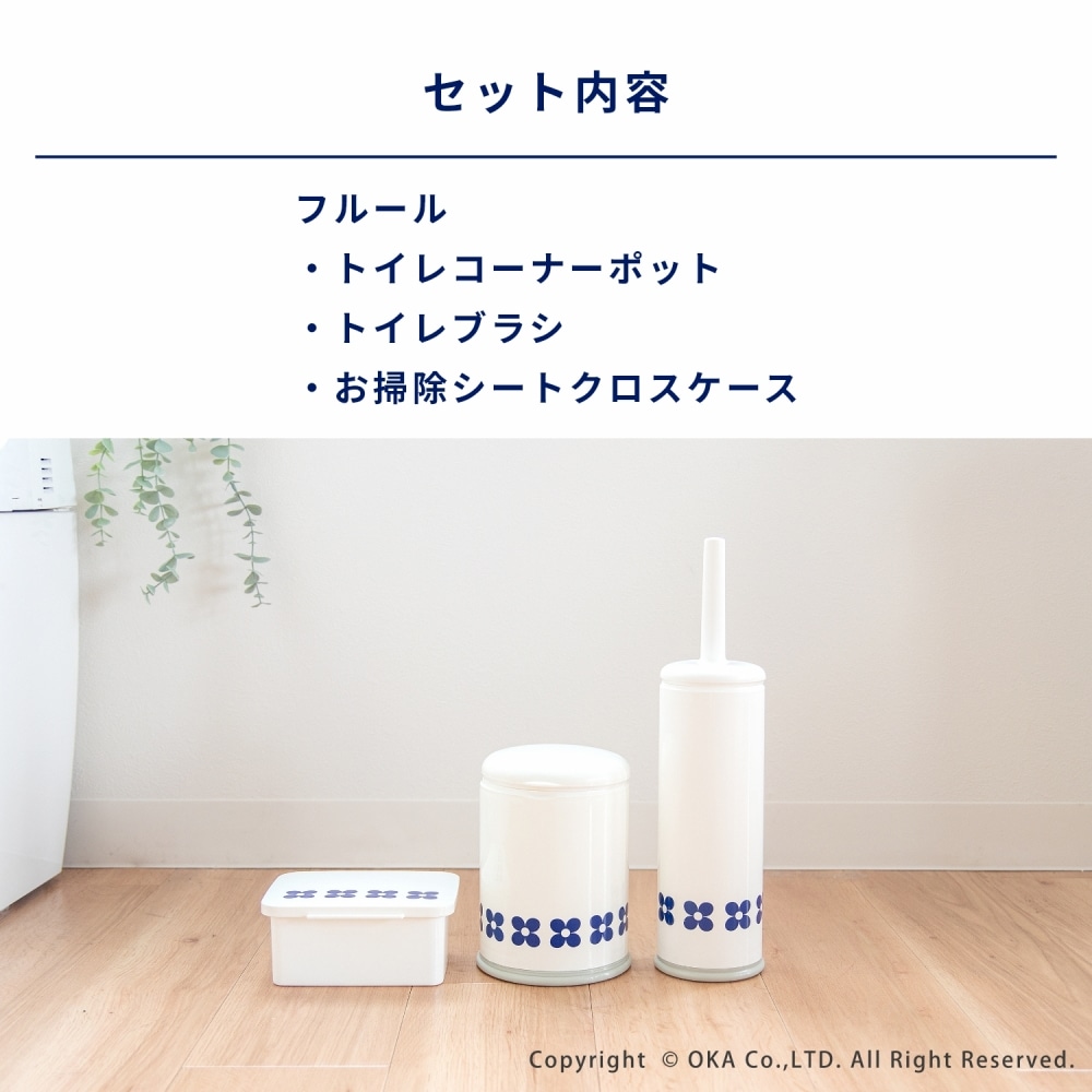 フルール フルール トイレポット&トイレブラシ ケース付&お掃除クロスケース