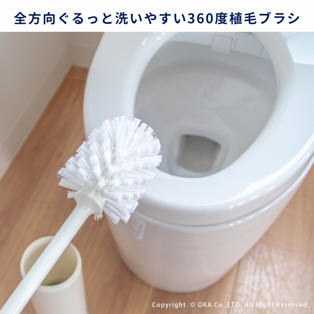 トイレの隅まできれいにお掃除できる360度ぐるっとブラシの毛が植えられています。だから磨きにくいトイレのフチなど程よい硬さのブラシの毛で掻き取ることができます。