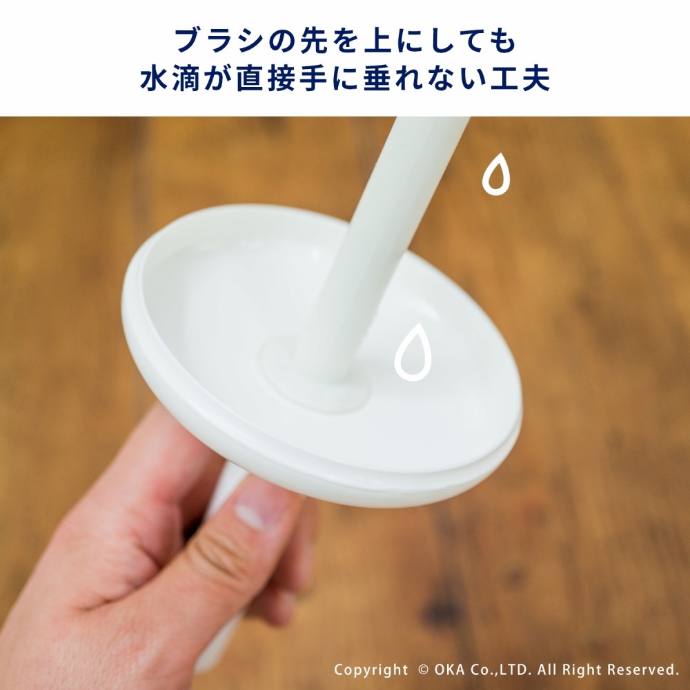 ブラシの先を上にしても水滴が直接手に垂れない工夫