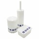 ゴミ袋の交換が簡単なトイレのゴミ箱「トイレポット」と360度植毛のブラシで掃除しやすい「トイレブラシケース付き」、お掃除シートを乾燥から守る詰め替え容器「お掃除クロスケース」の3点セットです。