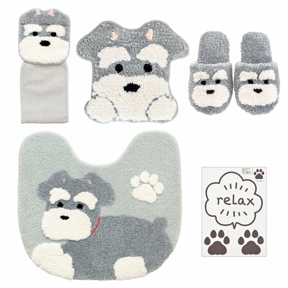 ファンディットアニマル トイレマット5点セット ( トイレマット+マスコット+スリッパ+ホルダーカバー+消臭シール )