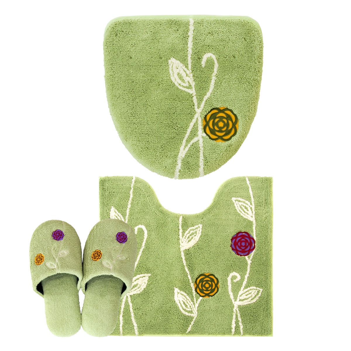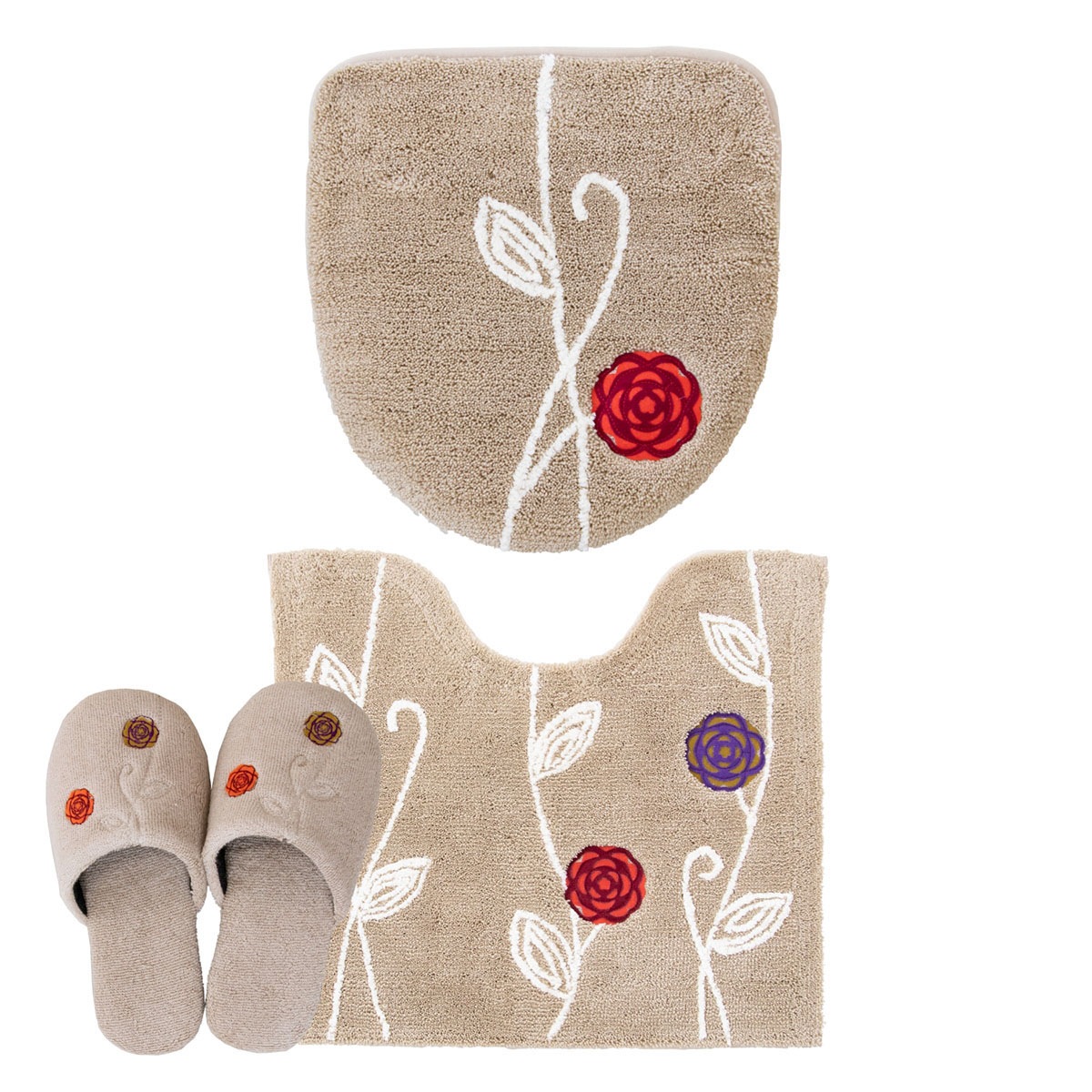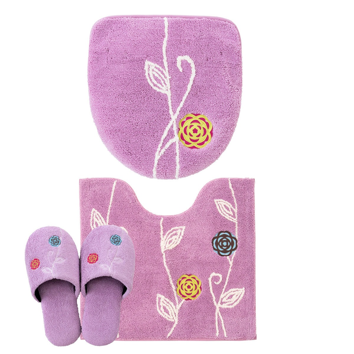 「エトフ」トイレタリシリーズの3点セット。あたたかく、心地よく、自宅で過ごす時間がほんの少し、素敵になりそうなゆったりとした雰囲気。シンプルなマットに、のびやかな植物のツルお花をかたどったブローチのようなアップリケ。ナチュラルなモチーフをほんの少しモダンにデザインしました。マットは毛足は短め、目のつまったしっかりした踏み心地になっています。ゆったりと伸びたツルや葉はふんわりとしたやわらかな素材を使い、細部までのこだわりが感じられます。 カラーは毎日にそっと彩りを添える、ピンクとベージュとグリーン、新たにイエローが追加された4色です。