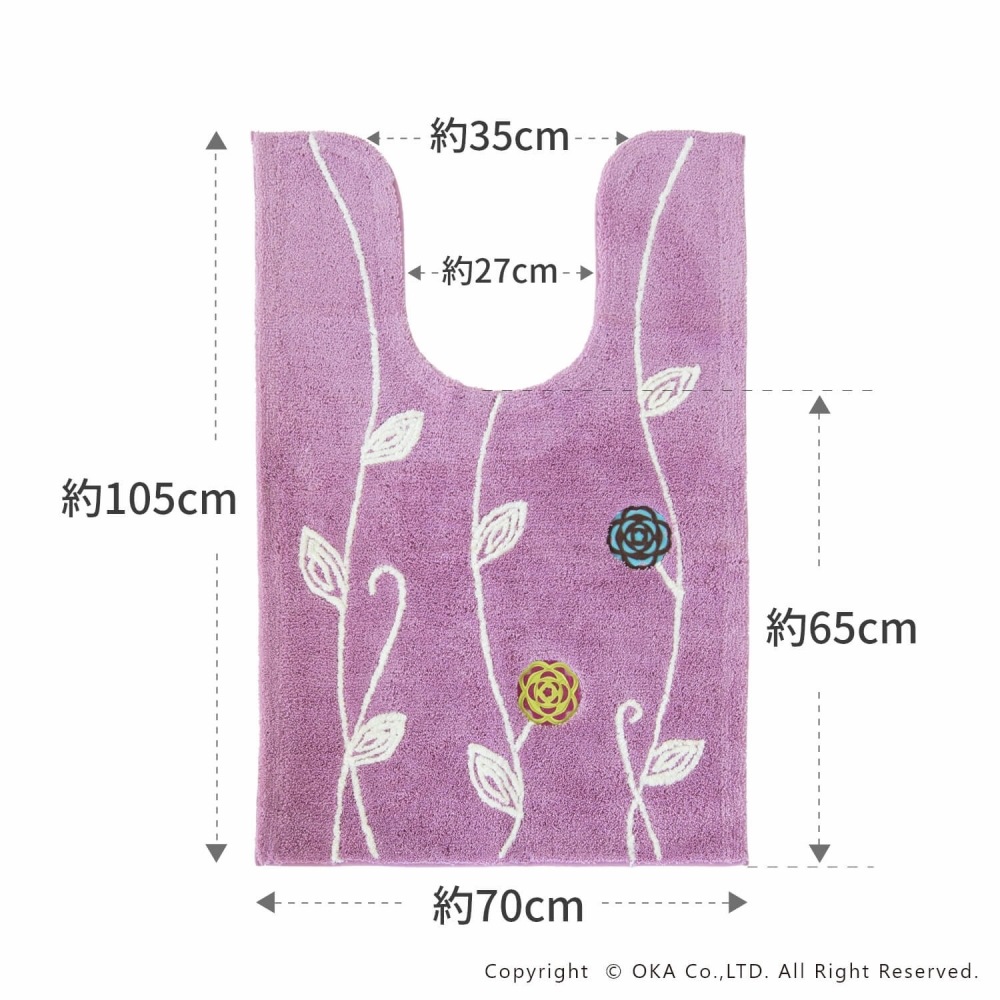 エトフ トイレマット 約57cm×62cm ( 洗える 風水 黄色 緑 ベージュ パープル系ピンク 便座シート )