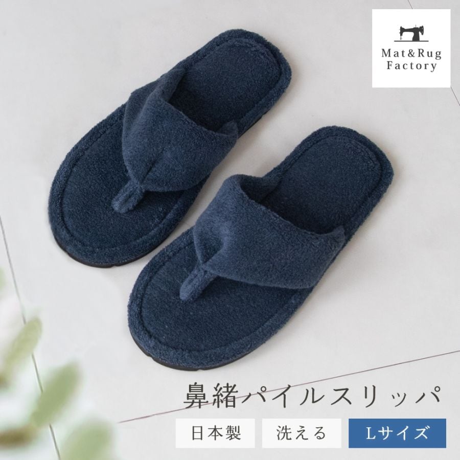 日本製 鼻緒パイルスリッパ Lサイズ ( ルームシューズ 洗える パイル 春夏 タオル地 バスルーム お風呂 素足 お揃い プレゼント メンズ )
