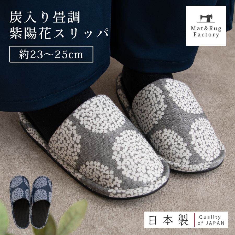 日本製 炭入り畳調紫陽花スリッパ ( ルームシューズ 来客用 室内履き 北欧 花柄 消臭 ギフトラッピング )