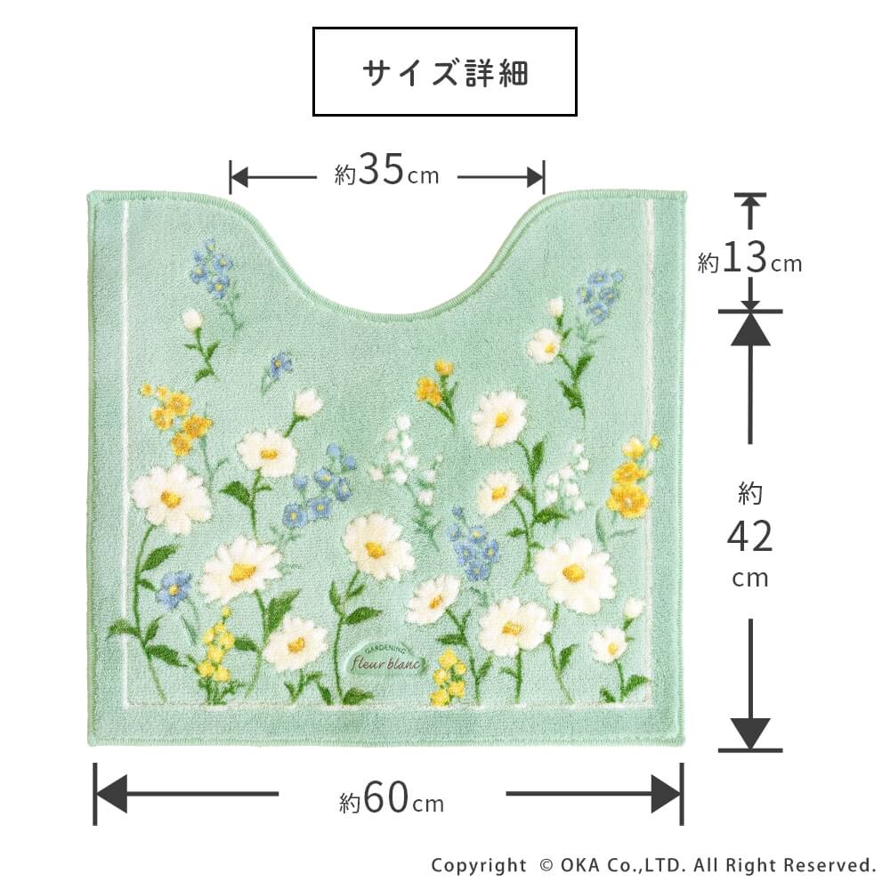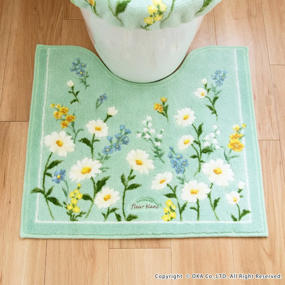 フルールブラン トイレマット 約55cm×60cm ( 洗える 花柄 ナチュラル 北欧 レギュラーサイズ )