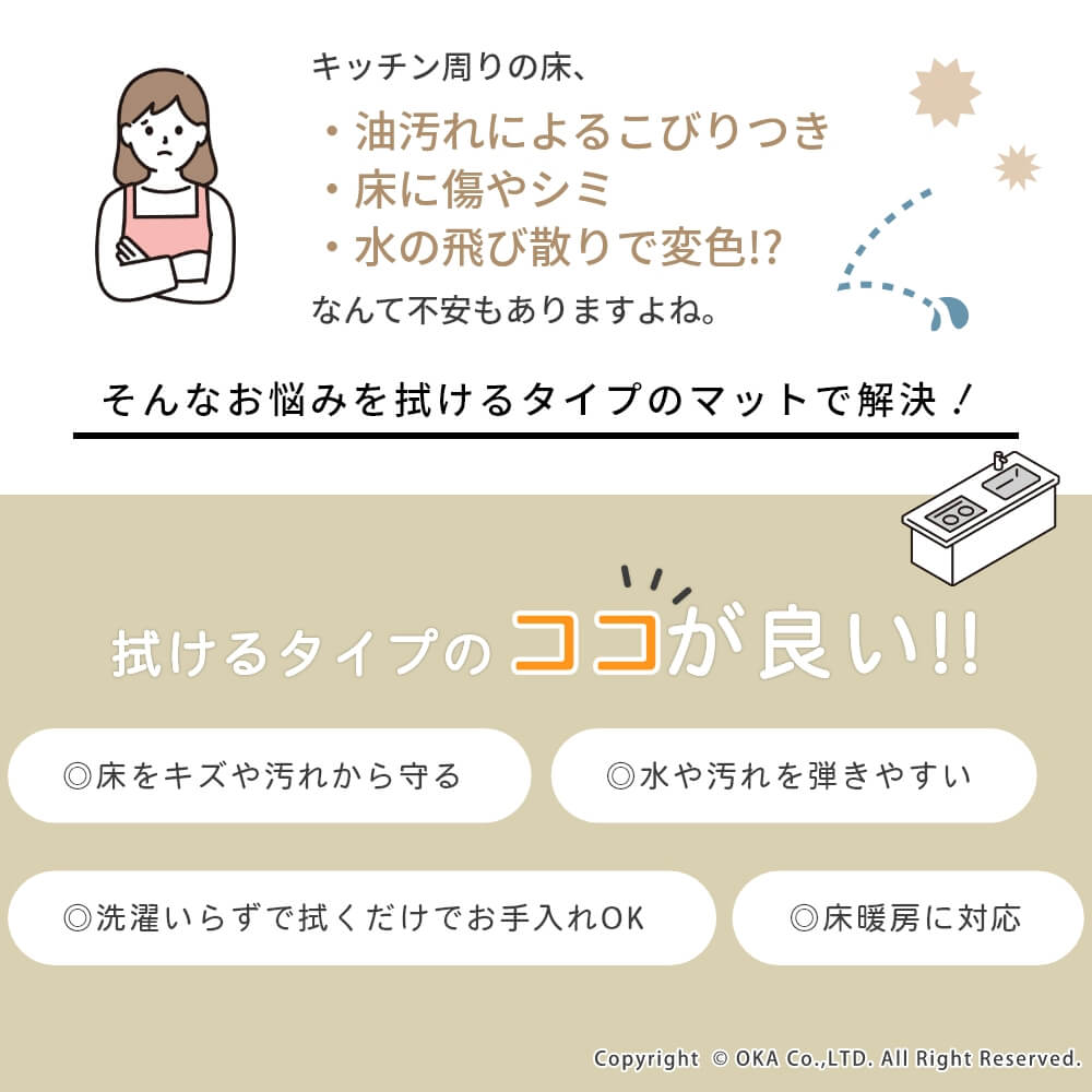 拭いてお手入れする キッチンマット 約45cm×120cm ( 拭ける PVC 台所マット )