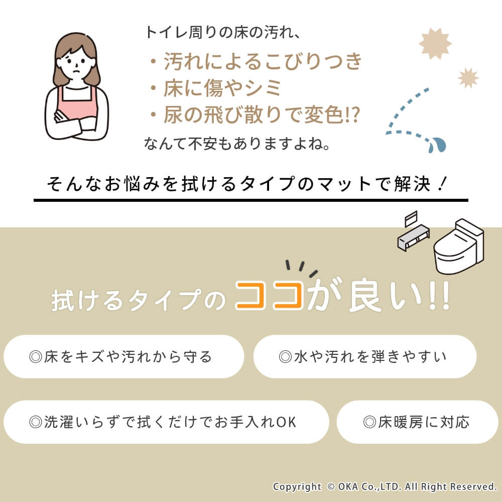 拭いてお手入れする トイレマット 約55cm×60cm ( 拭ける PVC トイレ )