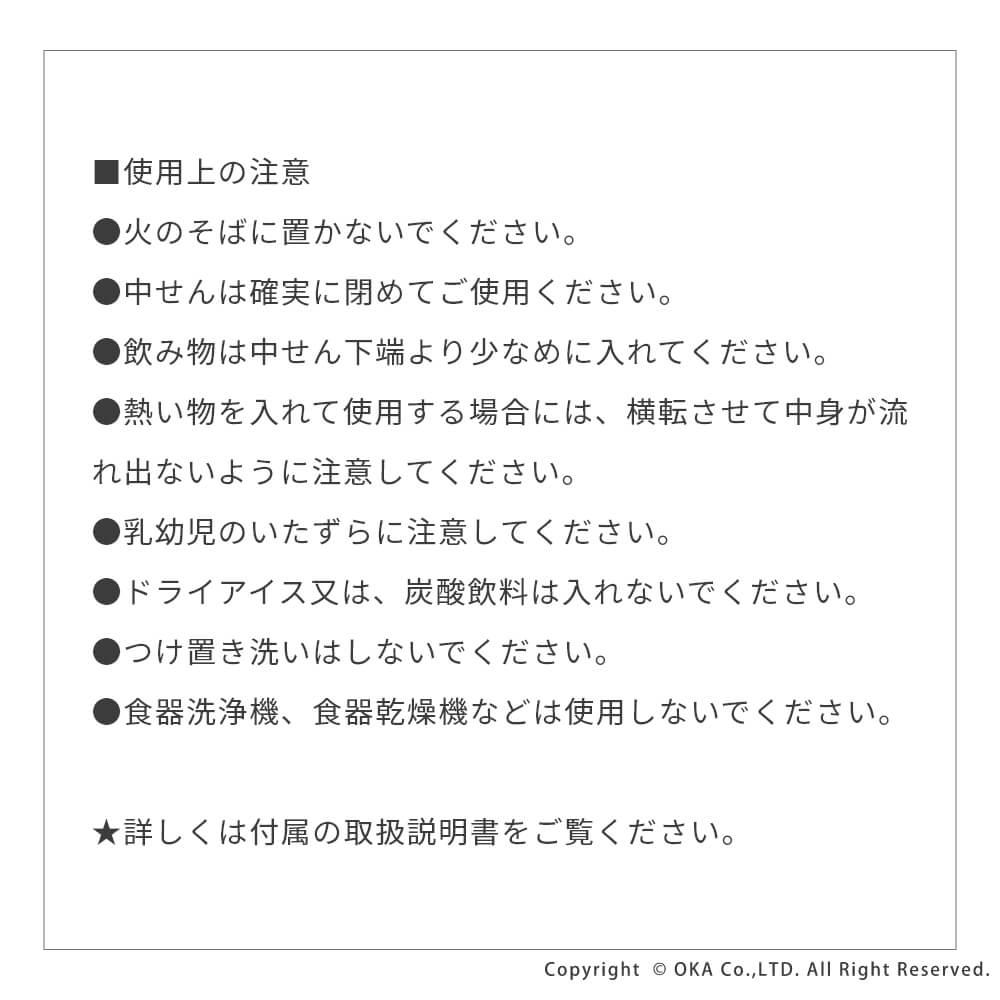 - 内びん・胴部・口金/ステンレス鋼、 中せん/ポリプロピレン、パッキン/シリコーンゴム