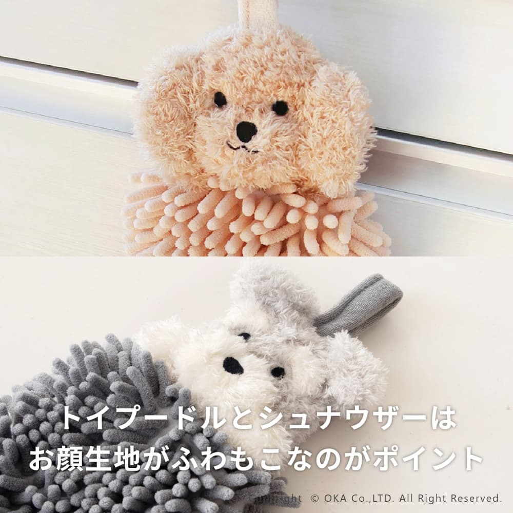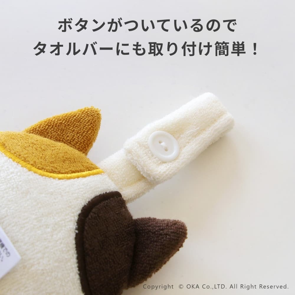 手洗い場をかわいく彩るいいアクセントに。コンパクトだからお出かけにも持ち運べて、ふわもこタオル生地が優しく手を包み込んでくれます。可愛い動物のデザインで目にするたびについ笑顔に。同じファンディットアニマルシリーズでお使いいただくと可愛いインテリアの雰囲気になります。ちょっとしたプレゼントやプチギフトにもおすすめです。お洗濯する際には、洗濯ネットに入れてご使用ください。