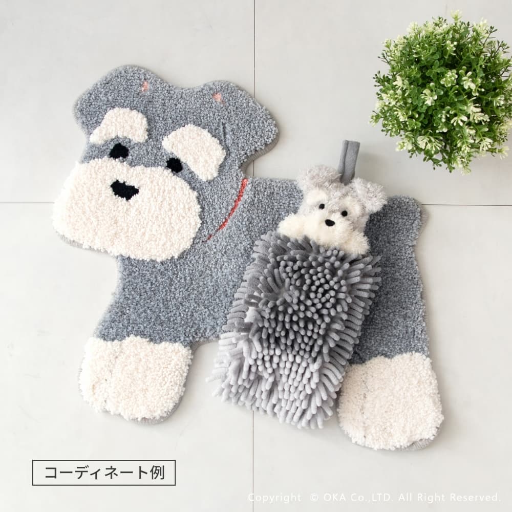 ファンディットアニマル ミニラグ+モールタオル セット ( 洗える アクセントマット タオル 犬 猫 プードル 豆しば 三毛猫 シュナウザー ギフト プレゼント )