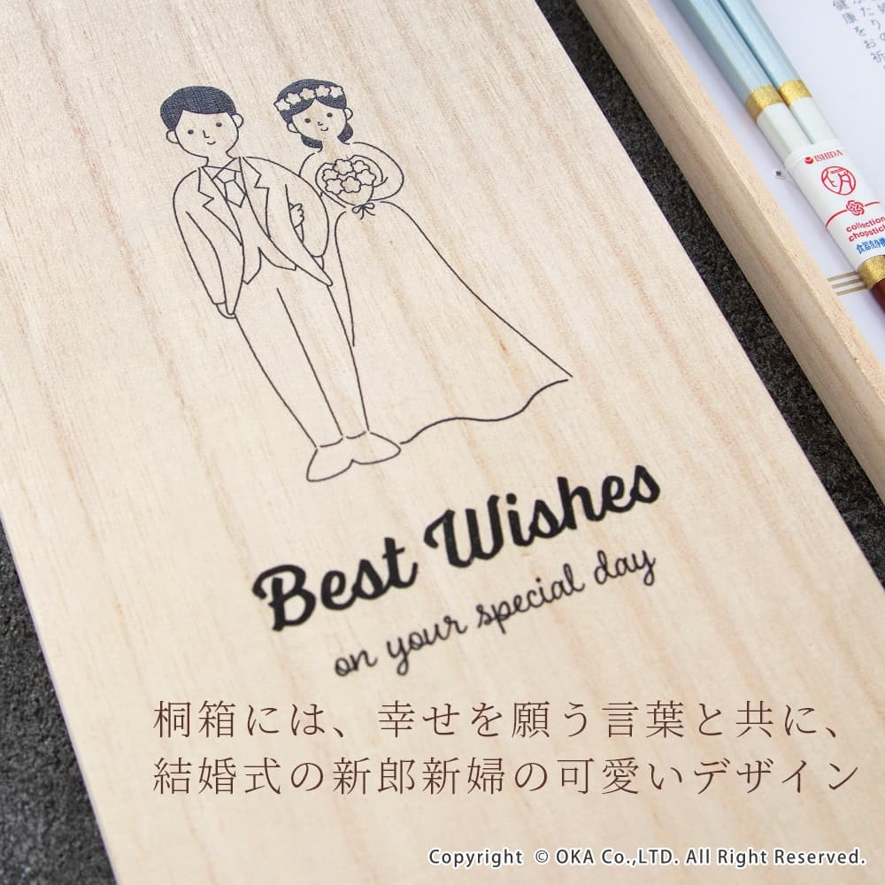 結婚祝い 夫婦箸 桐箱入箸置付ギフトセット シャンパンペア ( 日本製 お箸 食洗機対応 ウェディング 新婚 )