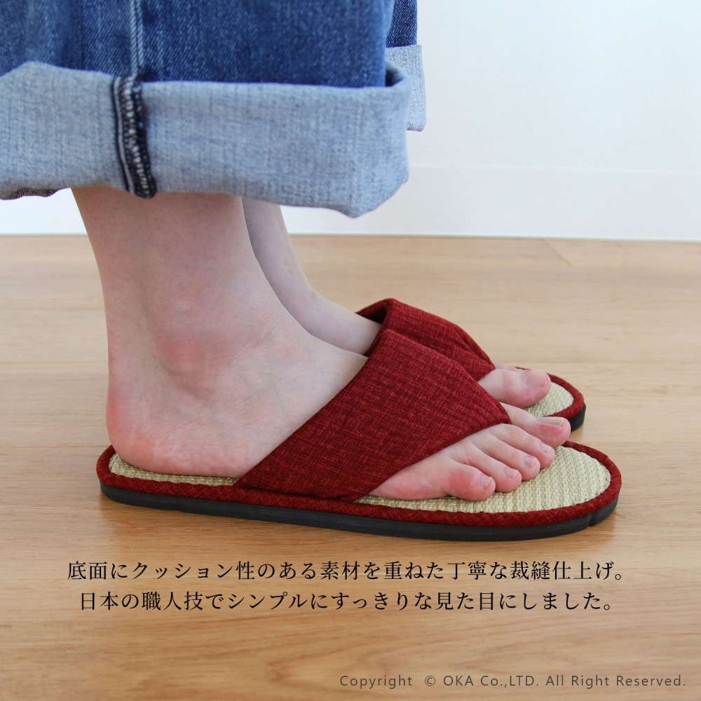 畳のサラサラッとした肌触りと独特の香りで癒される1足。
