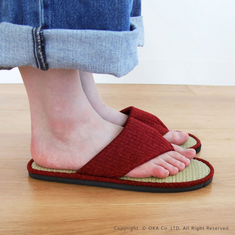 日本製 久留米織 畳スリッパ Mサイズ ( ルームシューズ い草 足のサイズ約24cmまで対応 )