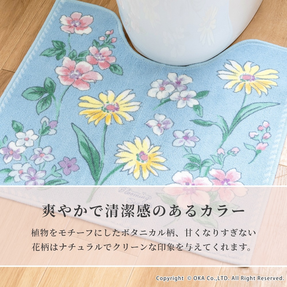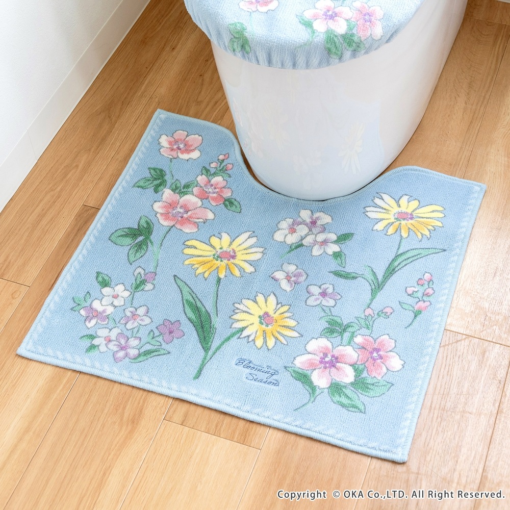 ブルーミングシーズン トイレマット 約55cm×60cm ( 洗える 花柄 ナチュラル 北欧 風水 レギュラーサイズ )