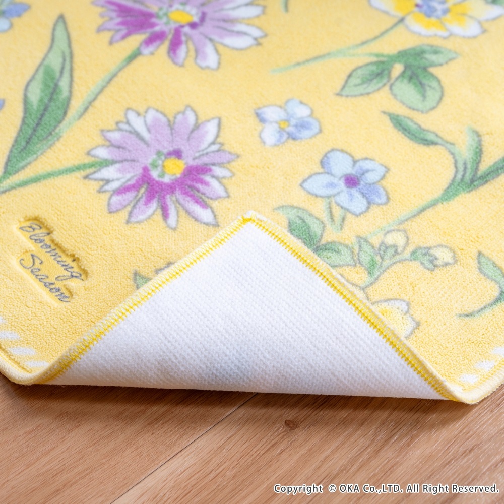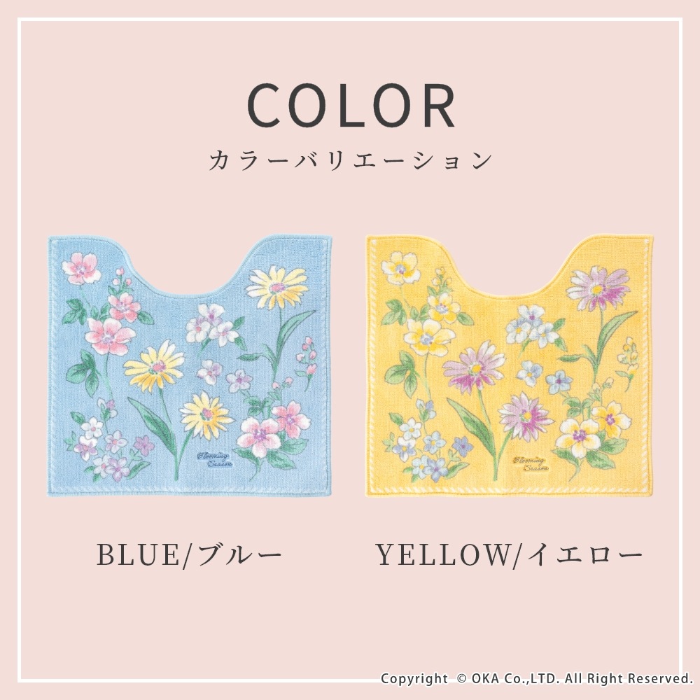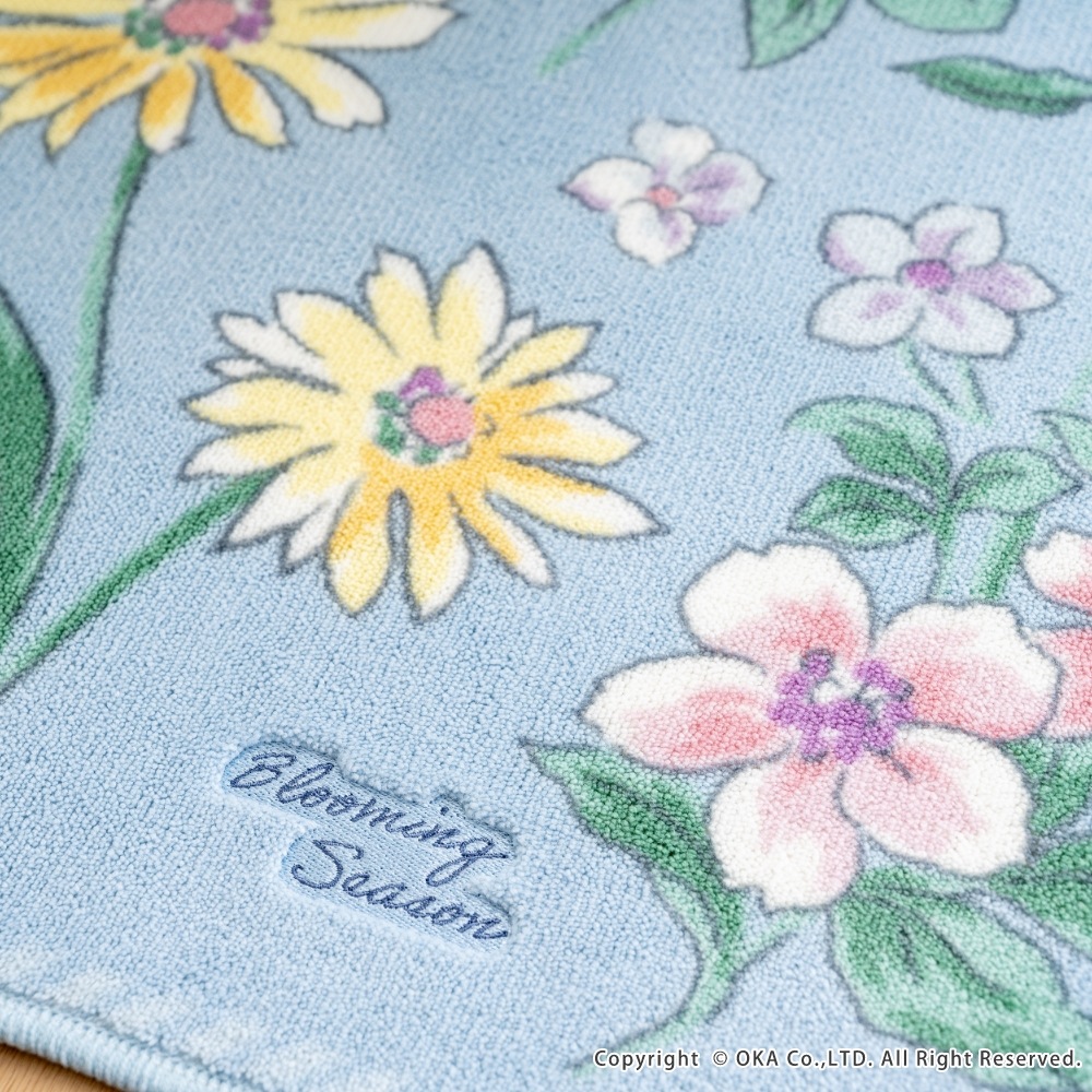 植物とお花をモチーフにしたボタニカル柄の「ブルーミングシーズン」トイレタリー。ブルーとイエローの爽やかな清潔感のあるベースカラーで甘くなりすぎないナチュラルなデザイン。日本製の上質なつくりは、細部まで絵柄の発色も綺麗で美しい仕上がりに。洗濯しやすい程よい厚さで、洗濯ネットに入れて丸洗いが簡単、裏面すべり止め加工付きでズレにくくなっています。フェミニンな印象、花柄がお好きな方には特におすすめ!