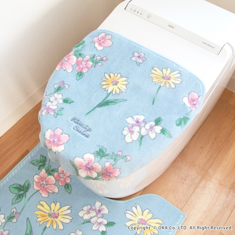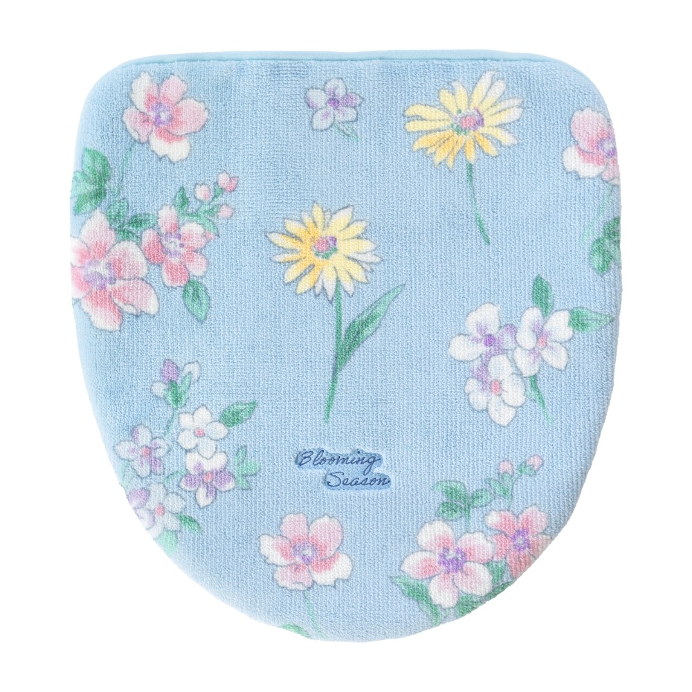 植物とお花をモチーフにしたボタニカル柄の「ブルーミングシーズン」トイレタリー。ブルーとイエローの爽やかな清潔感のあるベースカラーで甘くなりすぎないナチュラルなデザイン。日本製の上質なつくりは、細部まで絵柄の発色も綺麗で美しい仕上がりに。ほとんどの機種に適合できるよう吸着シートで貼り付けるタイプになっています。洗濯ネットに入れて丸洗い可能です。フェミニンな印象、花柄がお好きな方には特におすすめ!