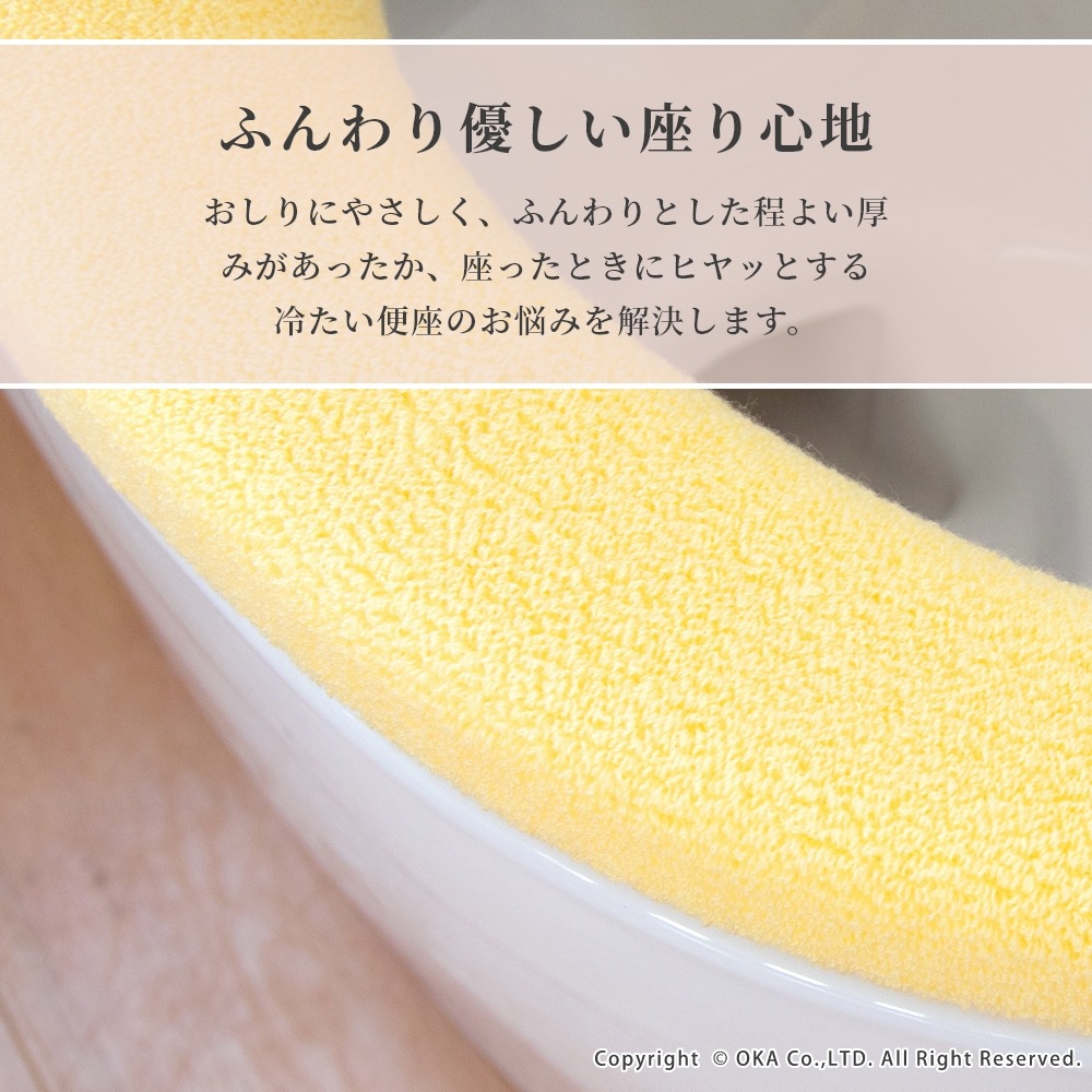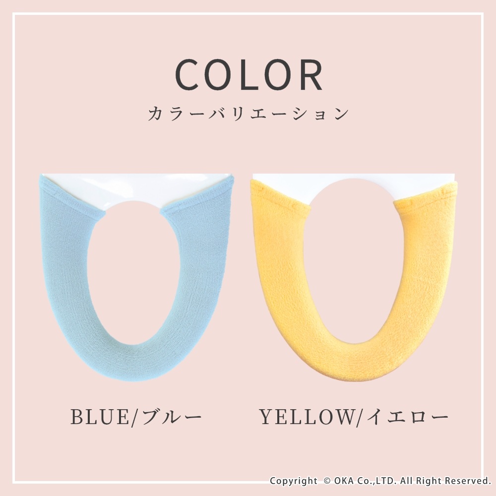 ブルーミングシーズントイレシリーズでお揃いにできる洗浄・暖房型専用の便座カバー。おしりにやさしいふんわりとした座り心地を体感できます。洗濯ネットに入れて丸洗い可能です。ブルーとイエローの爽やかな清潔感のあるカラーでトイレの空間をパッと明るく彩ってくれます。