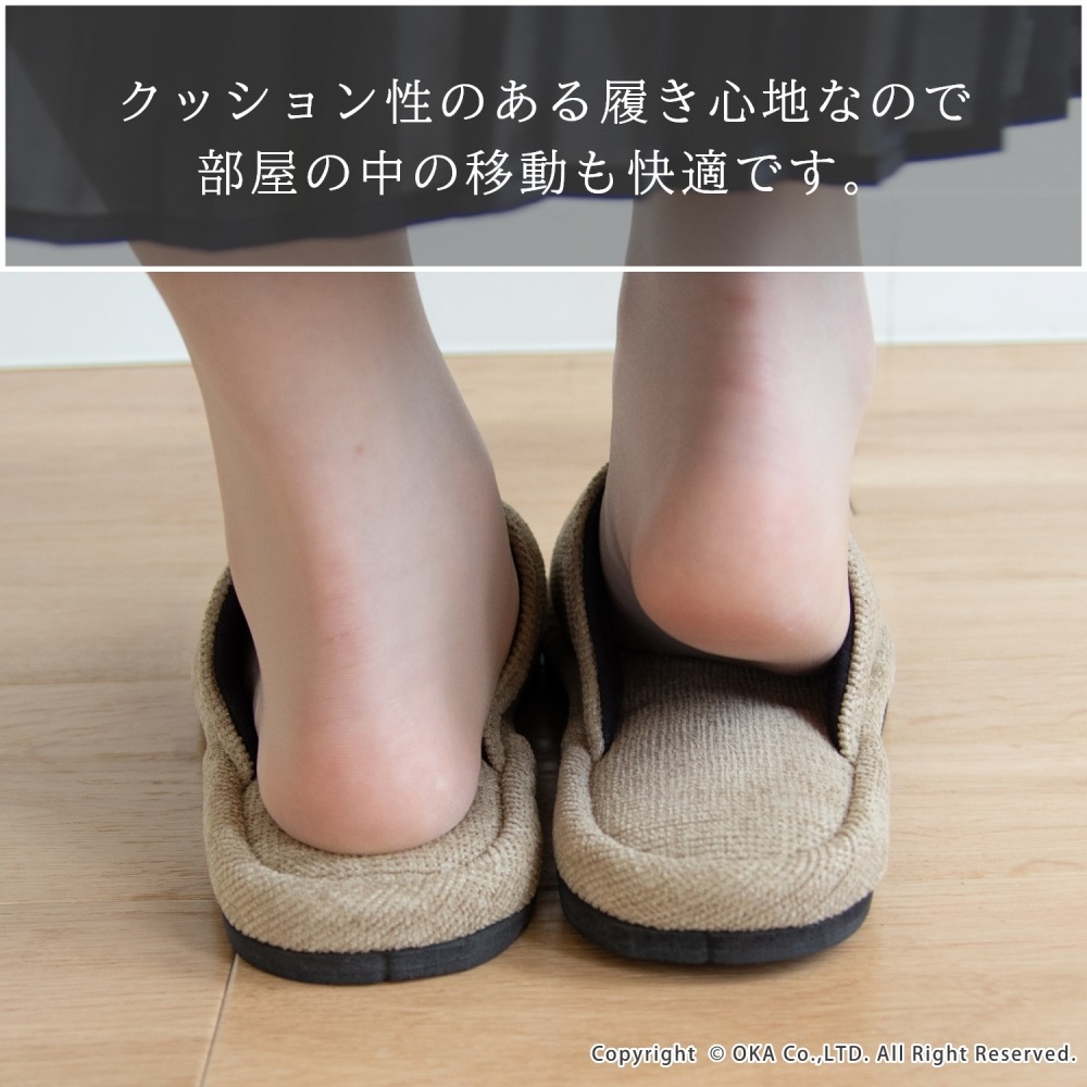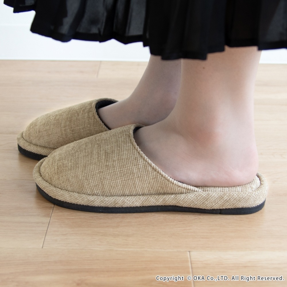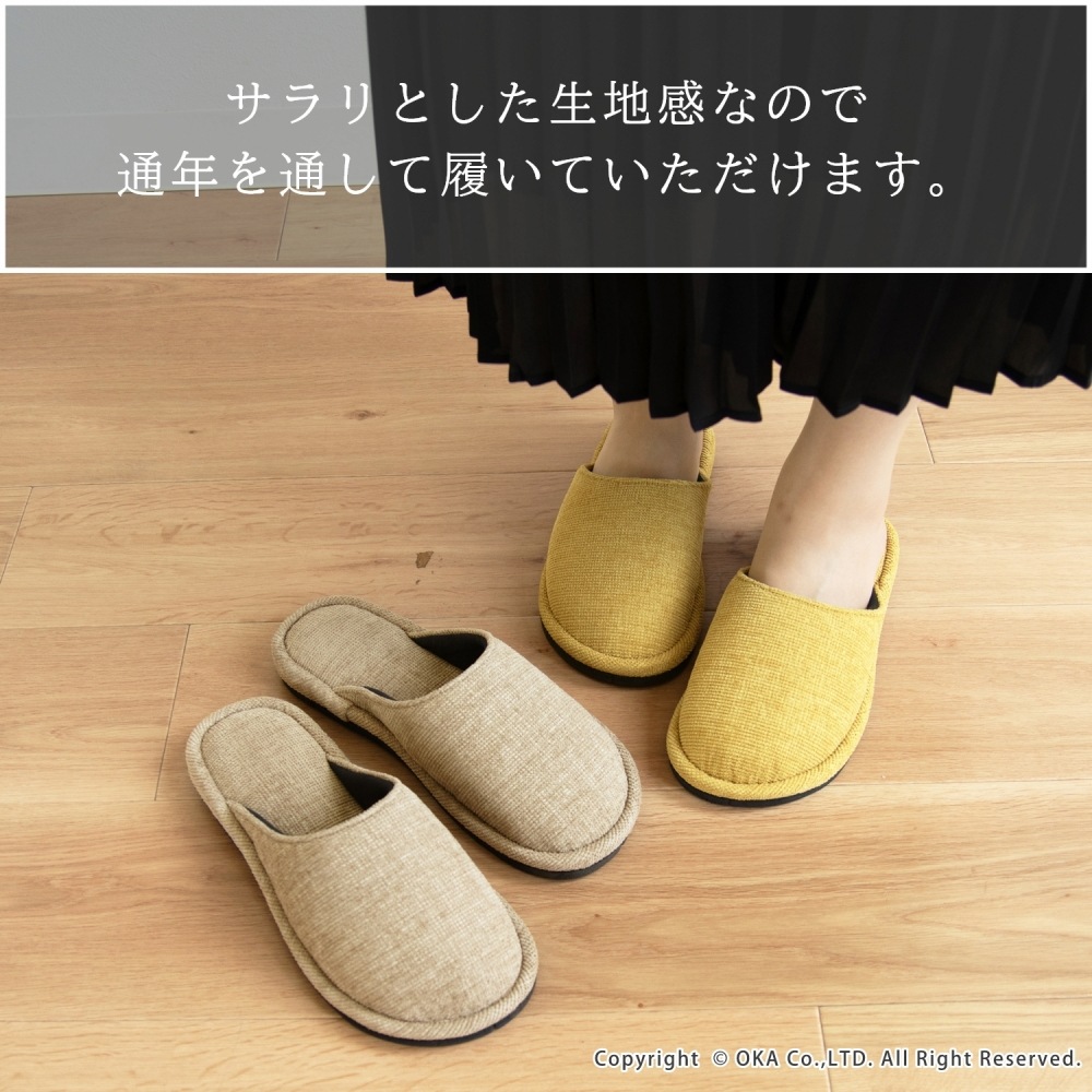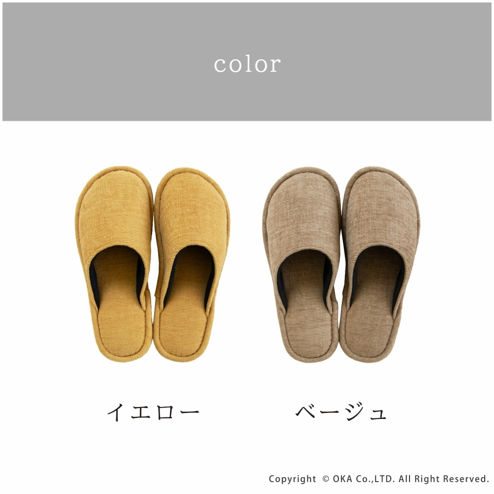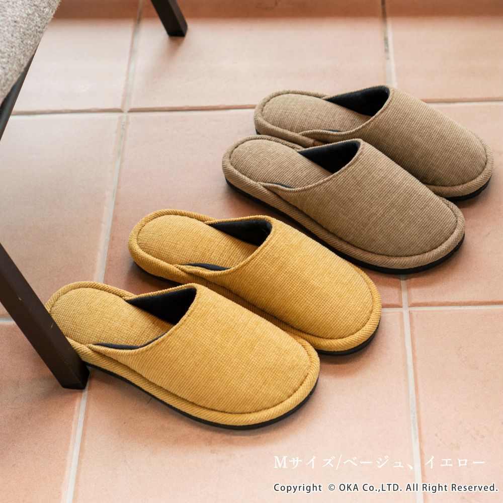 ソファのような生地感がさらりと落ち着く、まるでソファを履いているような感覚で足全体を包み込んでくれるスリッパ。 指先に向かってゆったりとしたフォルムでくつろげる履き心地です。シンプルかつ上品な発色なので、来客用にもお使いいただけます。 程よいクッション性があり、長時間の立ち仕事も足が疲れにくいです。 サイズは、MサイズとLサイズの2サイズ(サイズによってカラーは異なります)をご用意しておりますので、お揃いにお使いいただけます。新築や引っ越しのお祝いギフトにもおすすめです。丸洗い可能(洗濯ネットに入れてお洗濯してください)