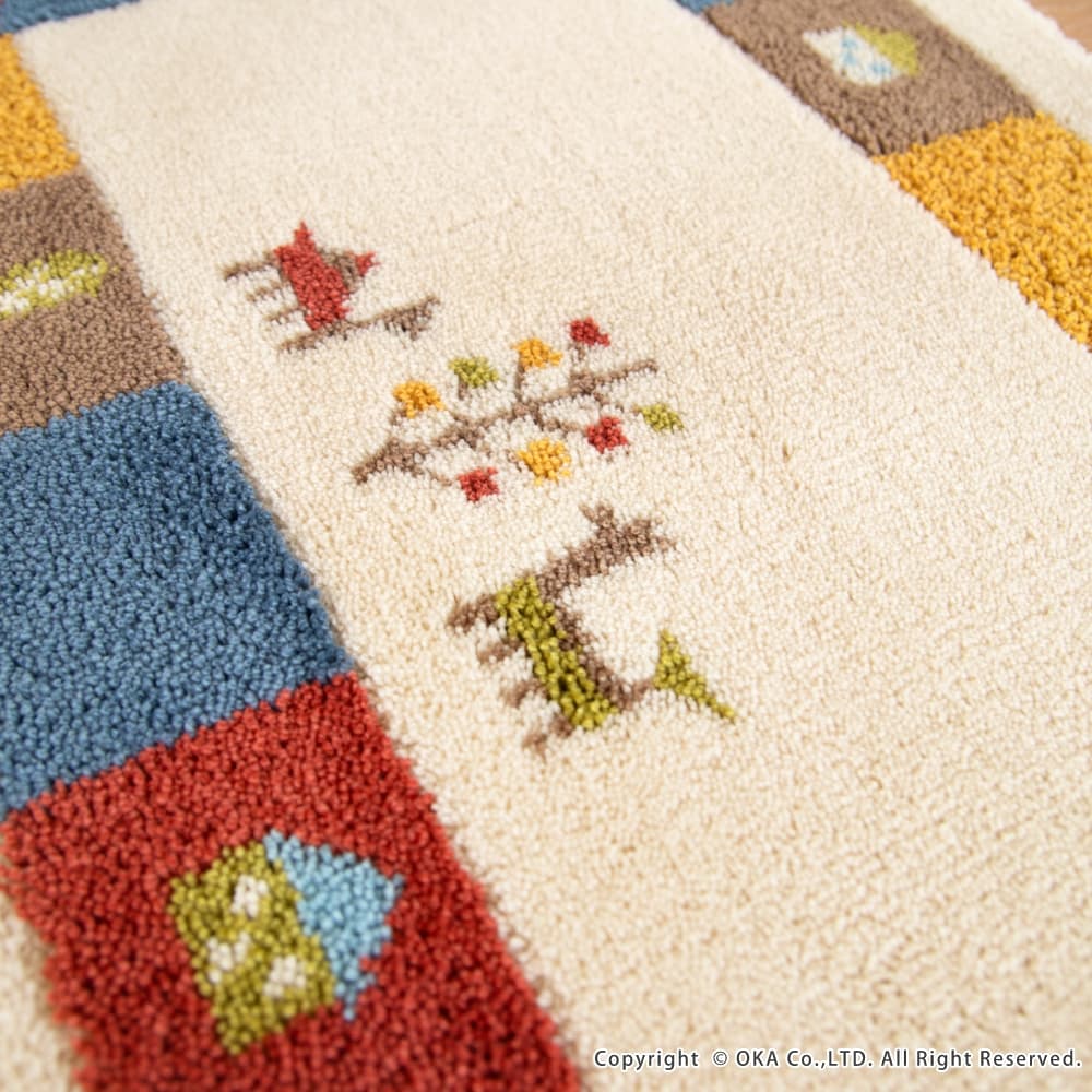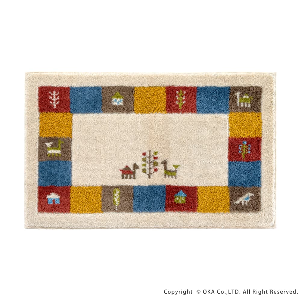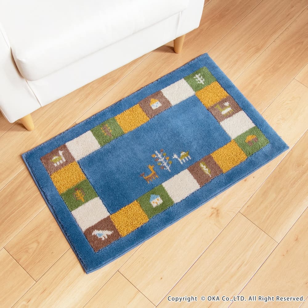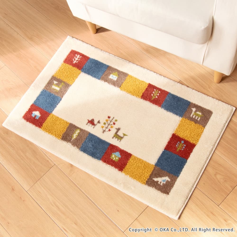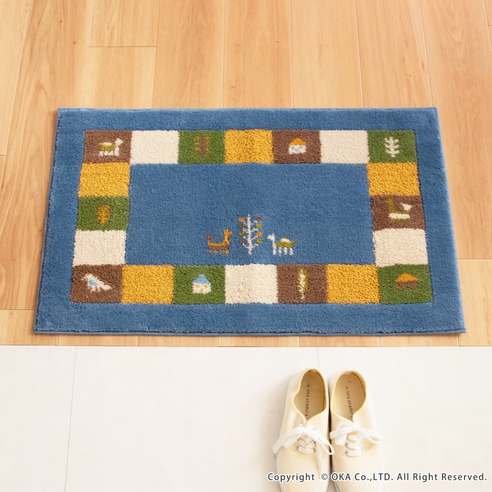 人気のギャベ柄の玄関マット「シエラ」。山脈周辺でギャベを織る遊牧民からイメージし、ギャベ柄に多く見られるブロック調デザイン。国内製造でお届けする上質な日本製のウィルトン織りマットです。 一目ひとめ、しっかり丁寧に織り込まれたウィルトン織りは耐久性に優れ、復元力にも優れているので、洗濯を繰り返してもへたれにくくなっています。マットの細部の縫製までこだわり、毛羽立ちが少ないのが特徴です。 扱いやすく薄手でしっかりしたウィルトン織りのマットですので、玄関だけでなく、ベットサイドやソファ前などのインテリアとしてもお使いいただけます。 裏面の四隅には吸着シートがついているので、人がよく行き来する玄関に敷いてもズレにくく、掃除機をかけてもめくり上がりにくいのが嬉しいポイントです。