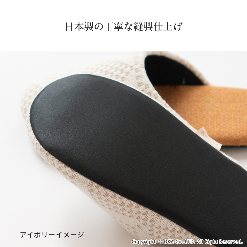 レース刺繍のルームシューズ ( 洗える スリッパ バブーシュ 足のサイズ約24.5cmまで対応 )