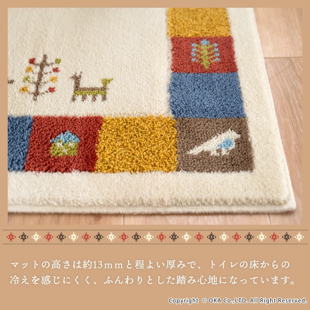 シエラ トイレマット 約55cm×60cm ( 洗える ギャベ ナチュラル 北欧 風水 レギュラーサイズ )