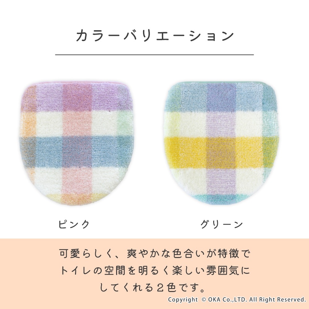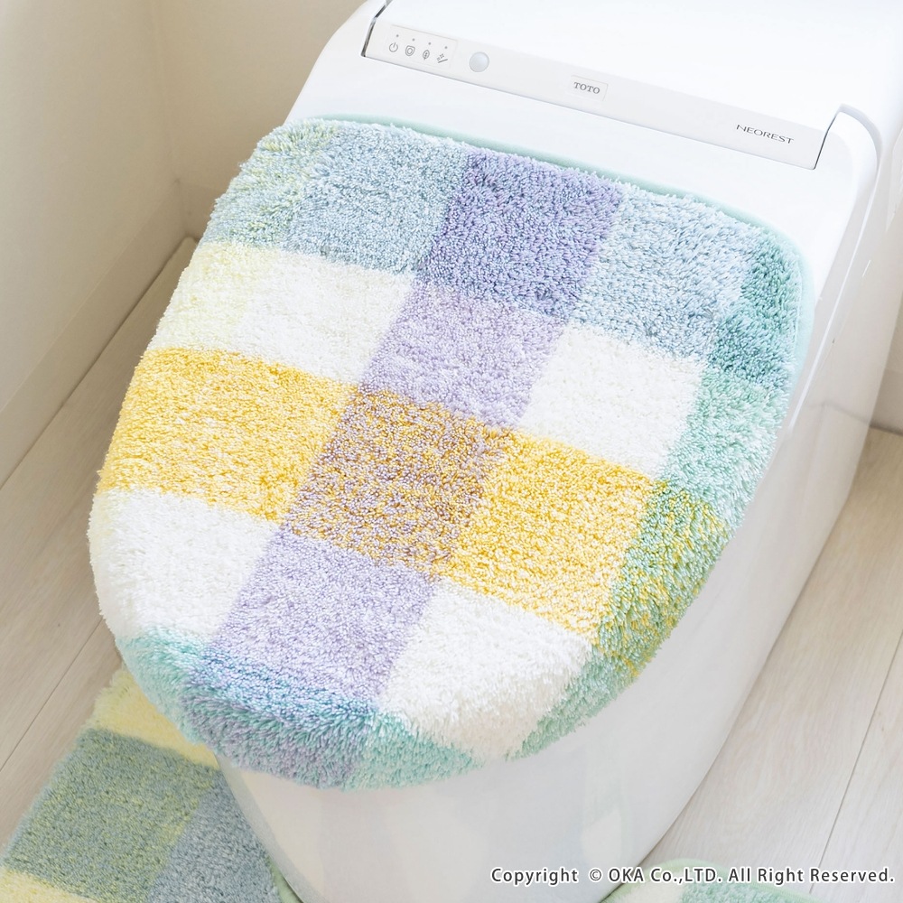 パレット トイレ2点セット ( ロングトイレマット+トイレフタカバー)(洗える 裏面すべり止め加工 チェック パステル ナチュラル 北欧 風水 )