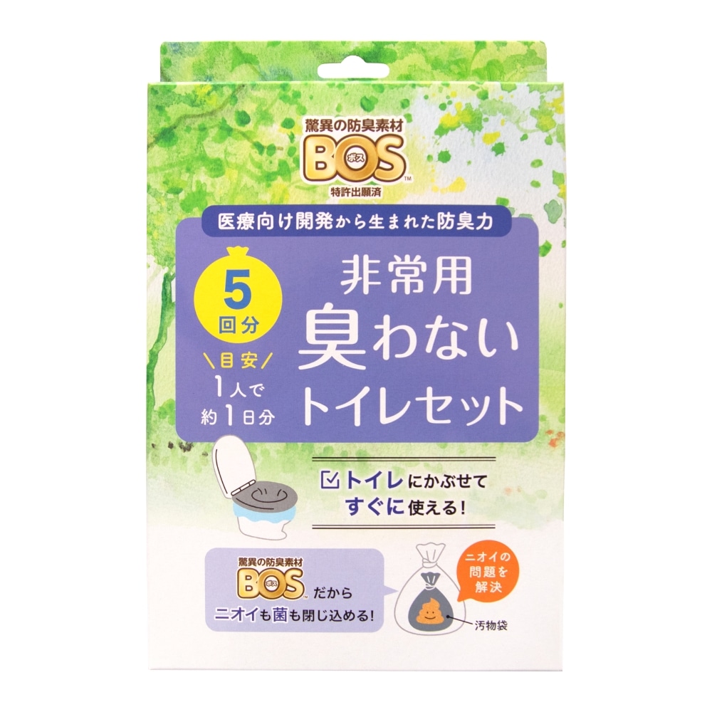BOS 非常用臭わないトイレセット5回分 ( 消臭 簡易トイレ 防災セット お試し 携帯トイレ 災害 防災 災害時用 車 凝固剤 コンパクト )