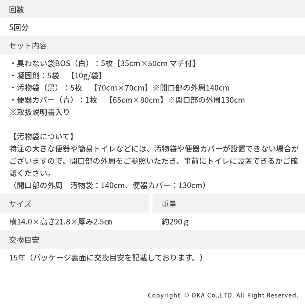 - 非常時用トイレセット 5回分