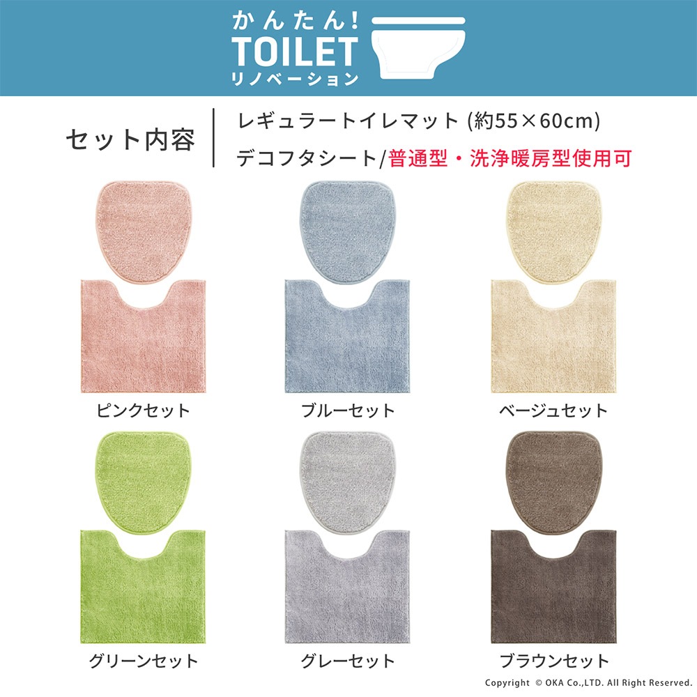 コクーン トイレ2点セット ( トイレマット+トイレデコフタシート )(洗える 裏面すべり止め 無地 シンプル ナチュラル 北欧 風水 レギュラーサイズ )