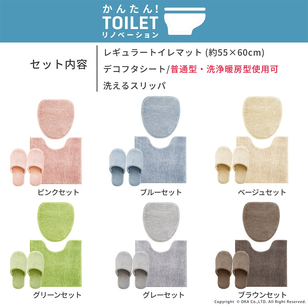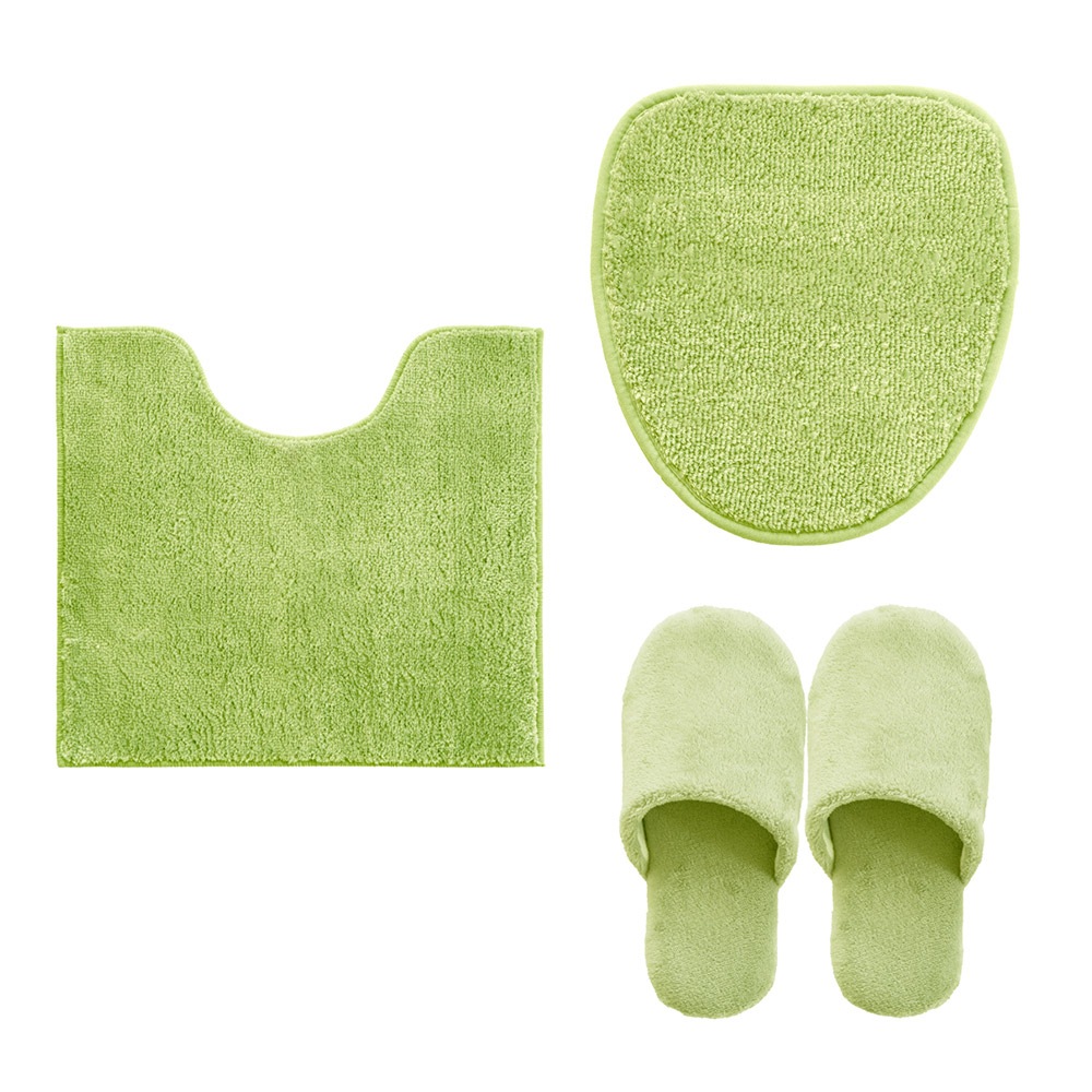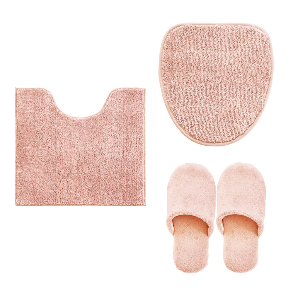 シンプル&リーズナブルながらも使い勝手にこだわったコクーントイレシリーズ。ふわっとしたポリエステル糸を使用しボリューム感を表現しました。温かみのあるトイレマット+フタカバー+スリッパのセットとなっています。シンプルな6色のデザインで、あなたのトイレに合うトイレタリーが見つかるかもしれません。洗濯機で丸洗いができ、清潔に保つことができます。※お洗濯の際は、洗濯ネットをご使用ください。
