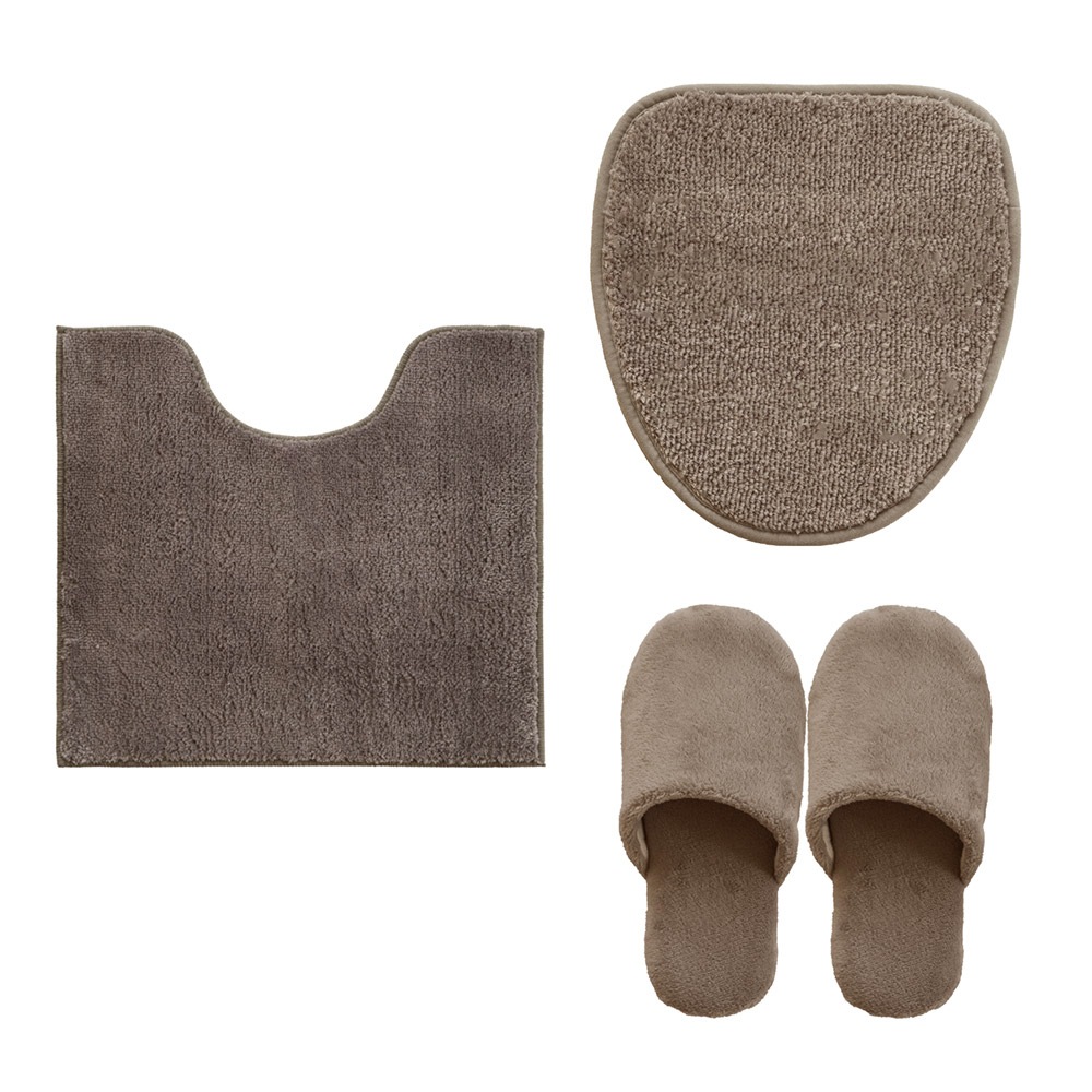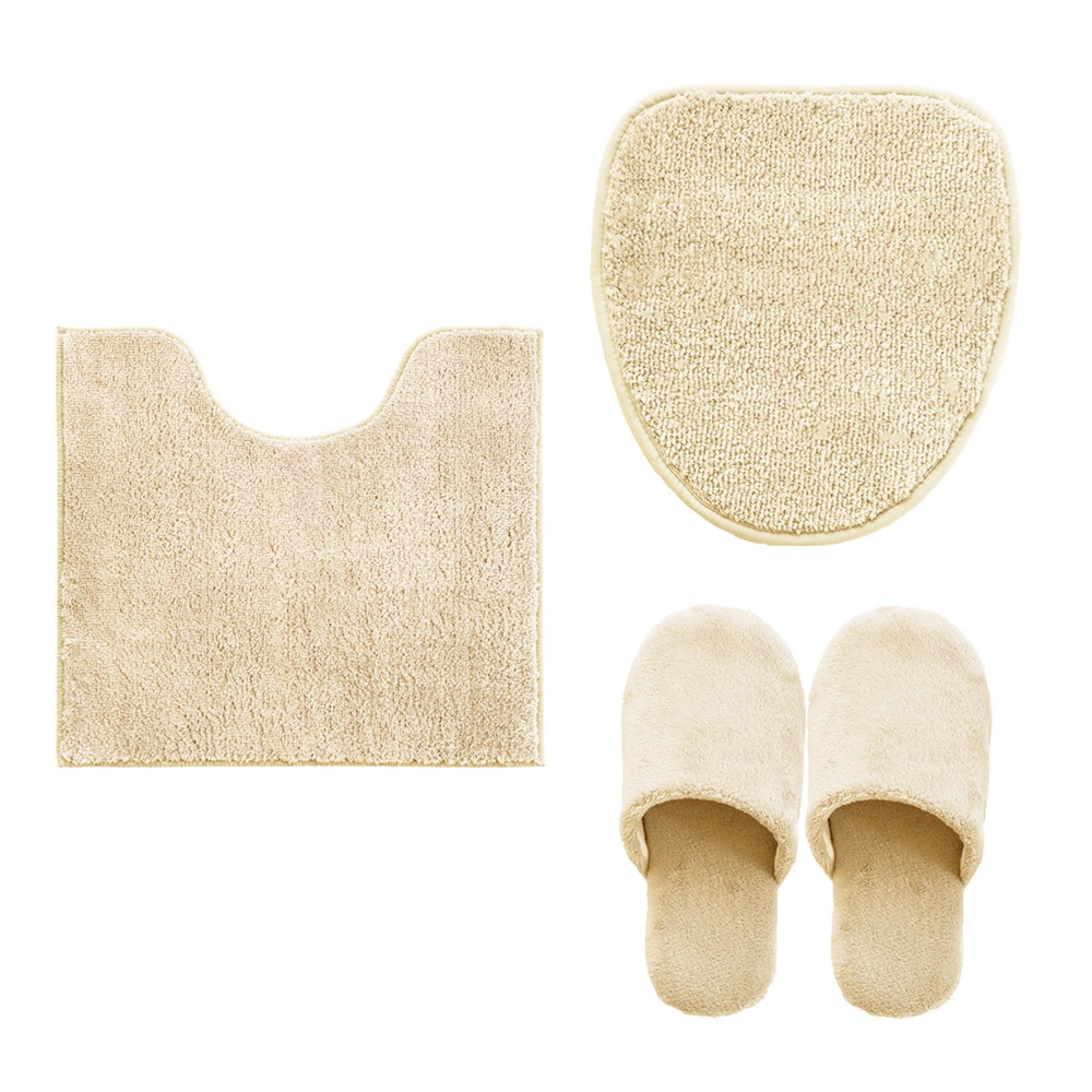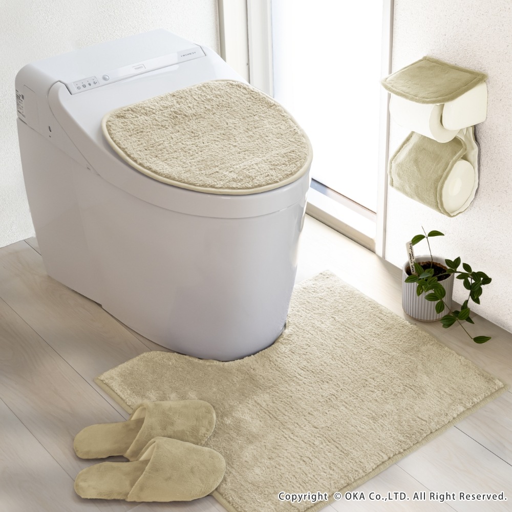 コクーン トイレ3点セット ( ロングトイレマット+トイレデコフタシート+スリッパ )(洗える 裏面すべり止め 無地 シンプル ナチュラル 北欧 風水 レギュラーサイズ )